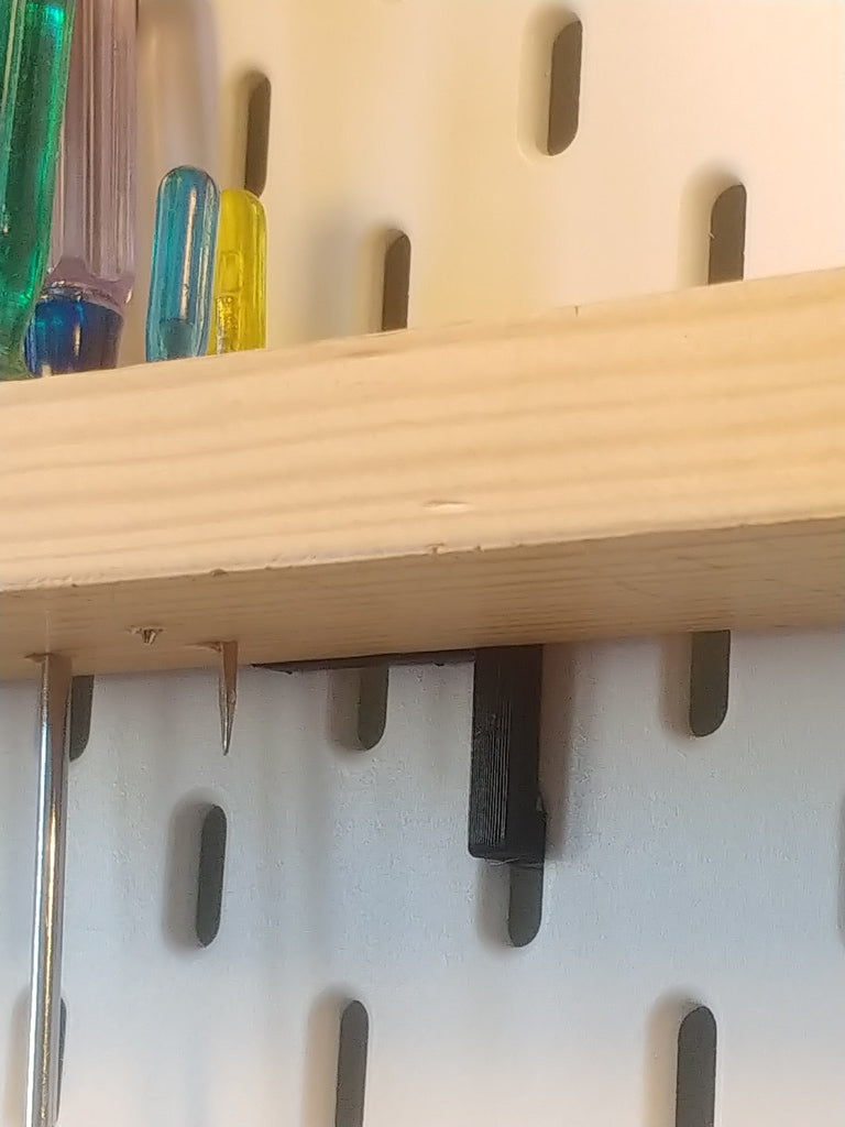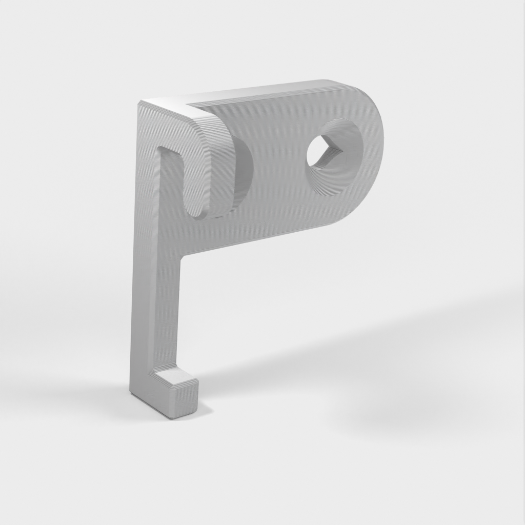 Jedná se o svorku pro řadu IKEA Skådis, která umožňuje namontovat téměř cokoli, co můžete přišroubovat do nástěnného panelu Skådis. Je to skvělé řešení, jak udržet dveře skříně, stěnu nebo jiné povrchy čisté a organizované.