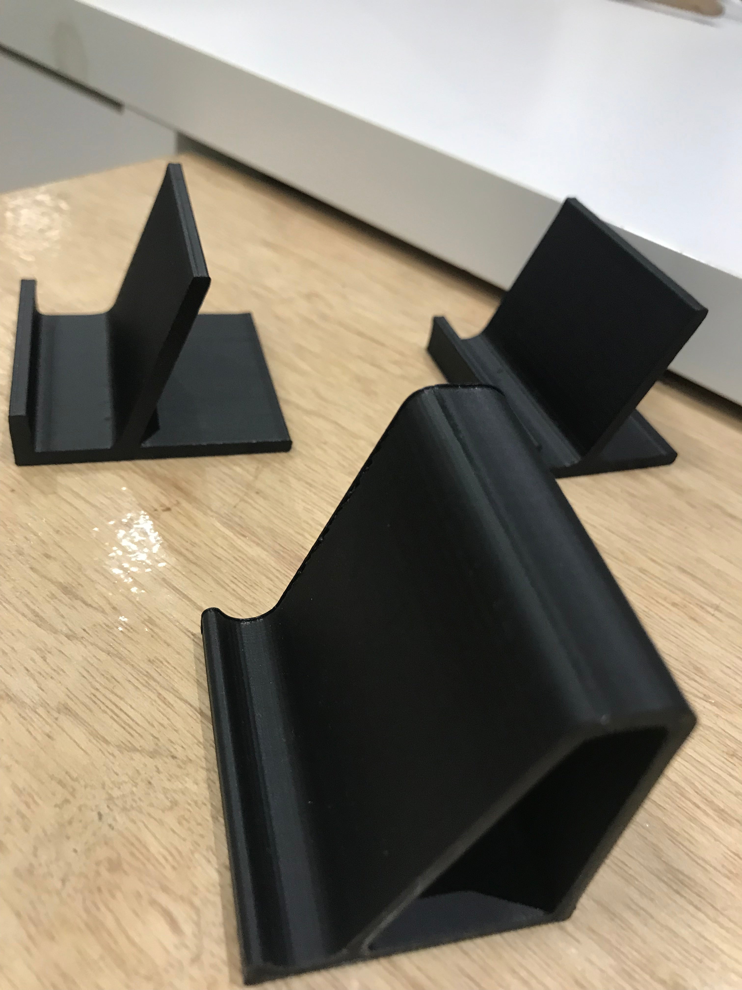 Jedná se o jednoduchý stojánek na telefon, který je vhodný prakticky pro všechny telefony a tablety. Tento stojánek se dodává ve dvou různých verzích, v pevnější verzi na cesty, která má opřená záda, a v další verzi, která šetří vlákna a čas, ale není tak vhodná na přenášení, protože se může zlomit.