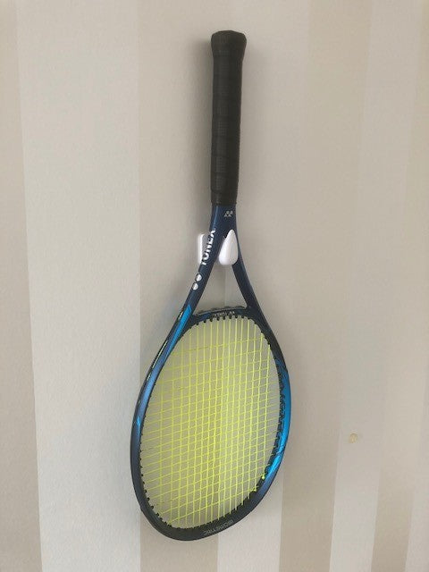 Jednoduchý držák na tenisovou raketu, který lze připevnit na zeď. Snadno se montuje pomocí oboustranné lepicí pásky a vytváří snadné skladování a přístup k vaší tenisové raketě.