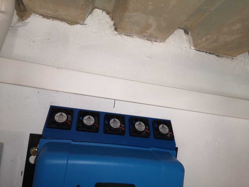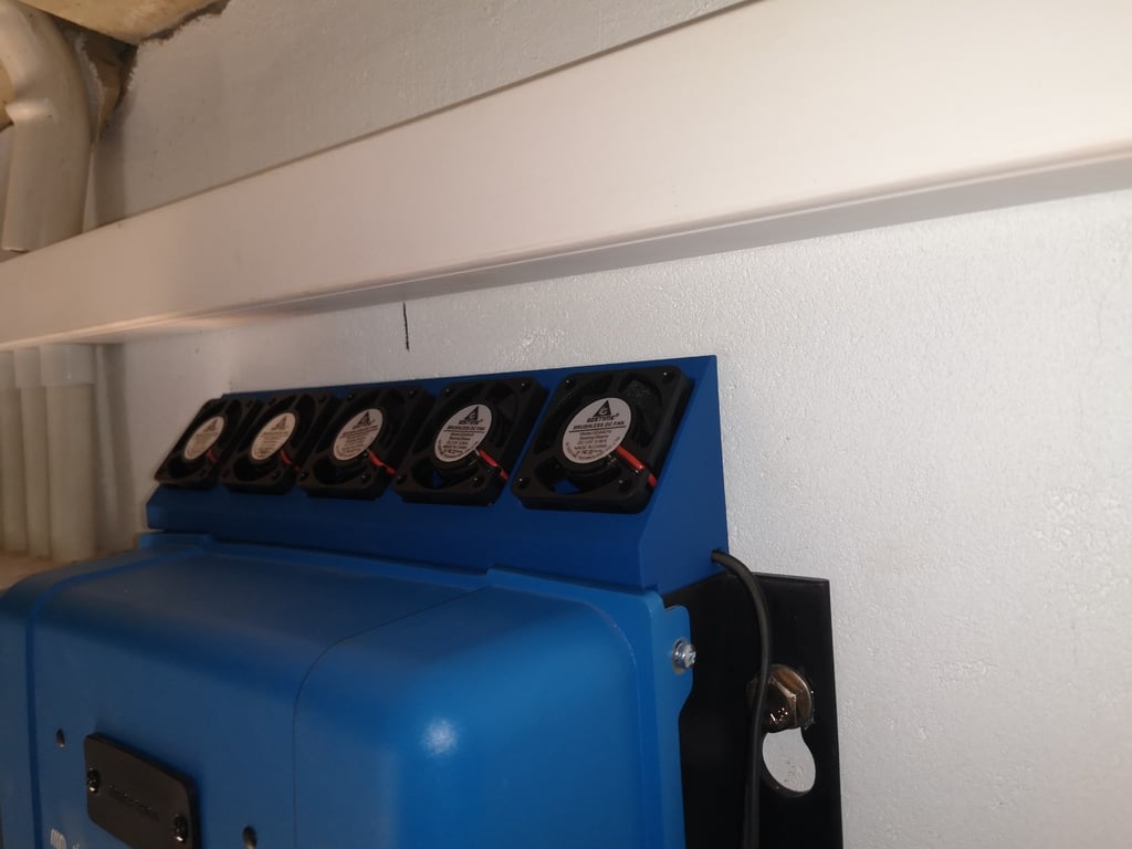 Odsávací kryt navržený tak, aby pasoval na 5x 40mm ventilátory na Victron 250/100 MPPT. Tento kryt výrazně zlepšuje chlazení chladiče za nabíječkou.