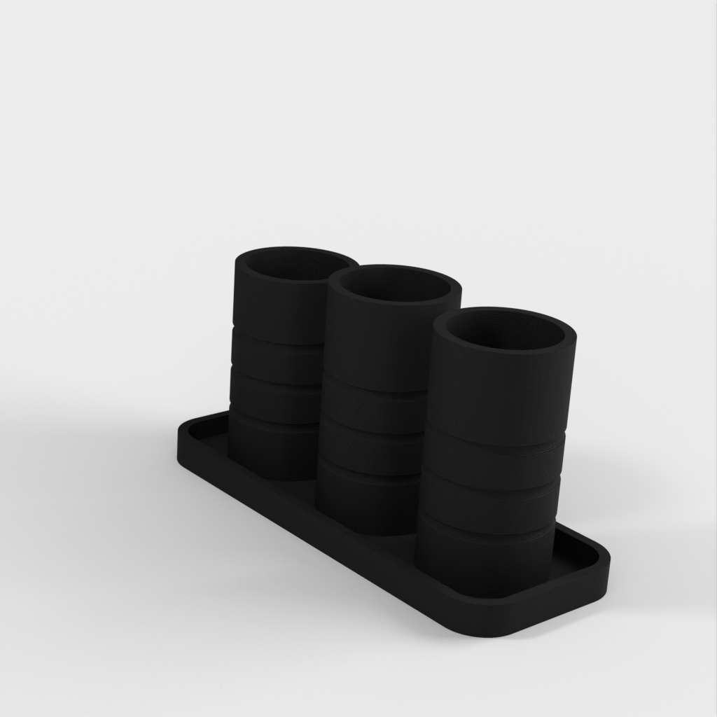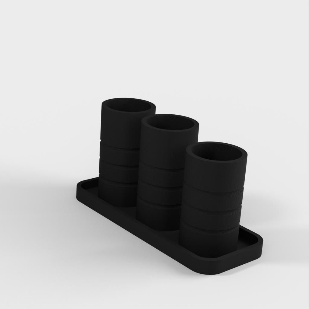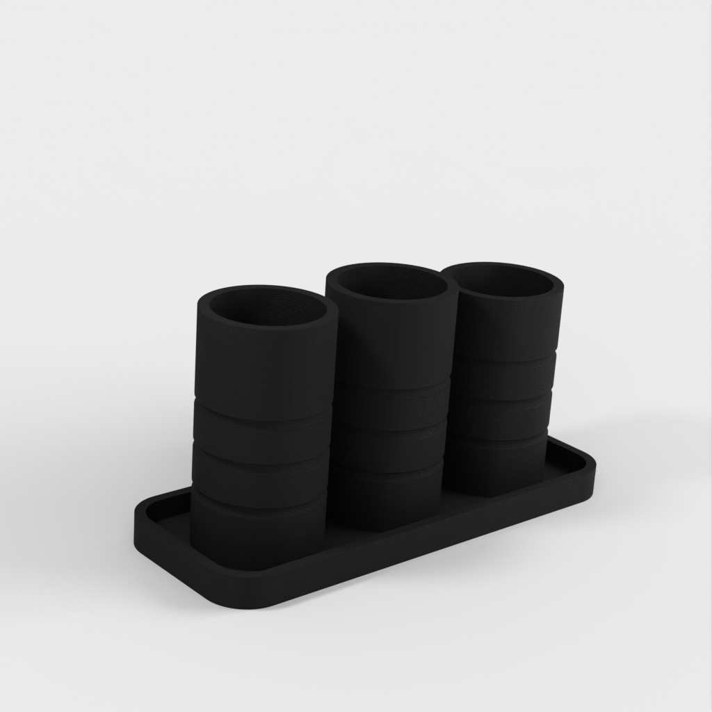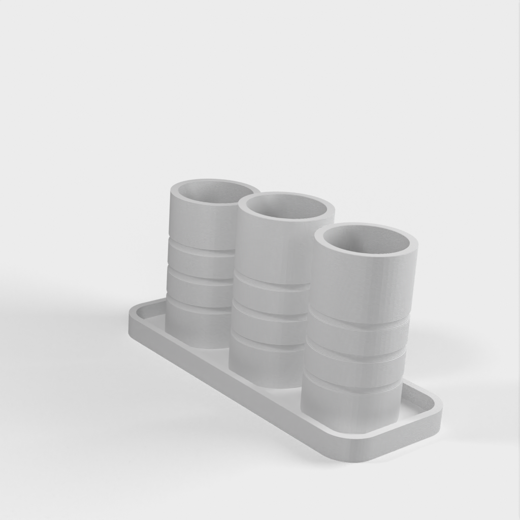 Jednoduchý koupelnový organizér se dvěma hlavními držáky na zubní kartáčky a třetím na čisticí tyčinky nebo jiné předměty. Pomůže vám udržet pořádek a organizaci v koupelně.
