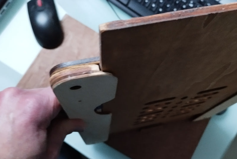 Podpěra PC verze 2 je přenosný stojan s posuvnou podložkou pod myš. Jeho účelem je umožnit používání počítače na kolenou nebo jinde, aniž by blokoval spodní větrací otvory počítače, a přitom bylo možné používat myš. Tato podpěra má také přirozené větrání zespodu a z boku. Doporučujeme lehce obrousit zářezy na poličce, aby se usnadnilo klouzání na úrovni pružiny.