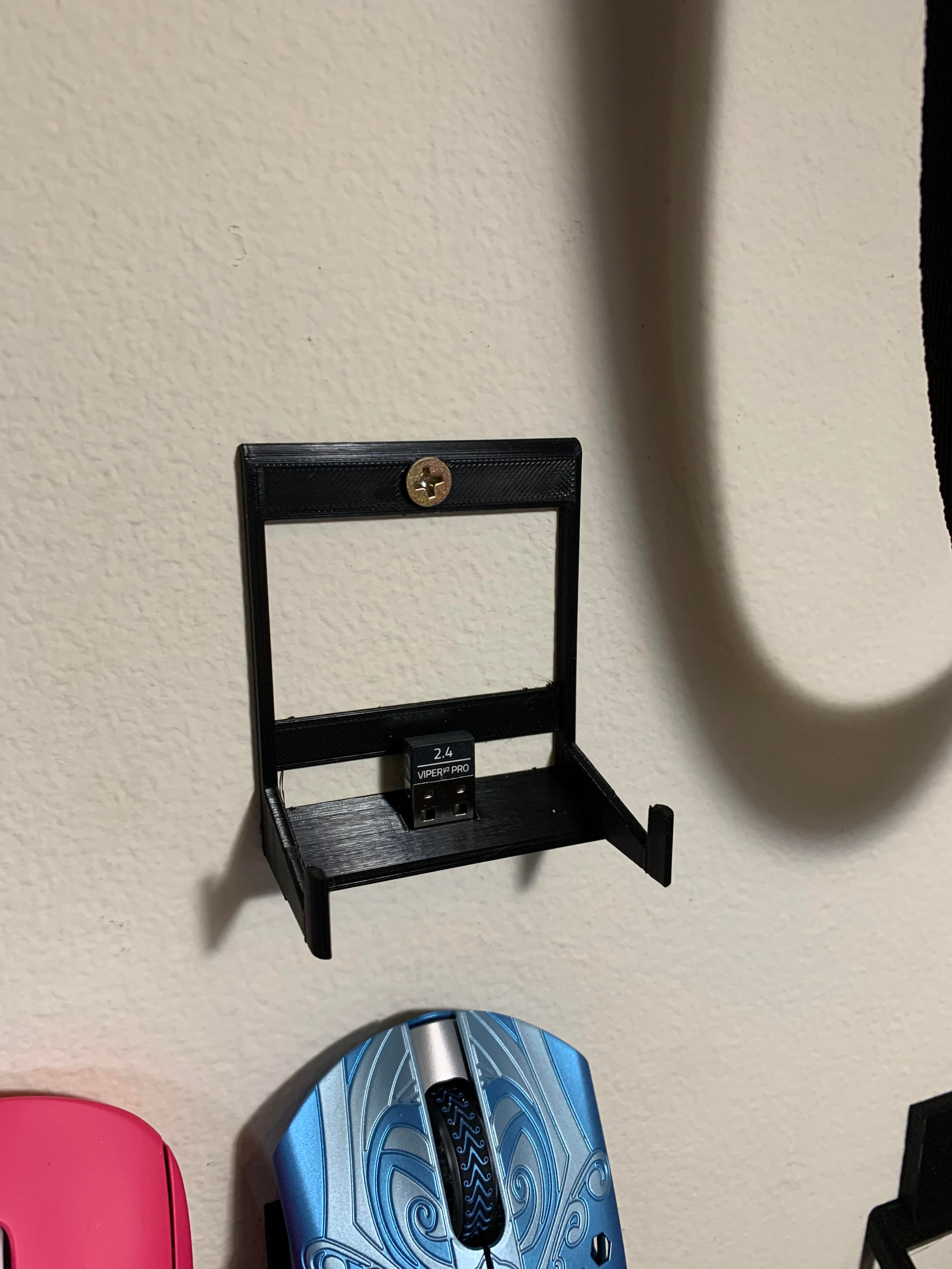 Minimalistický nástěnný držák pro herní myš s prostorem pro dongle