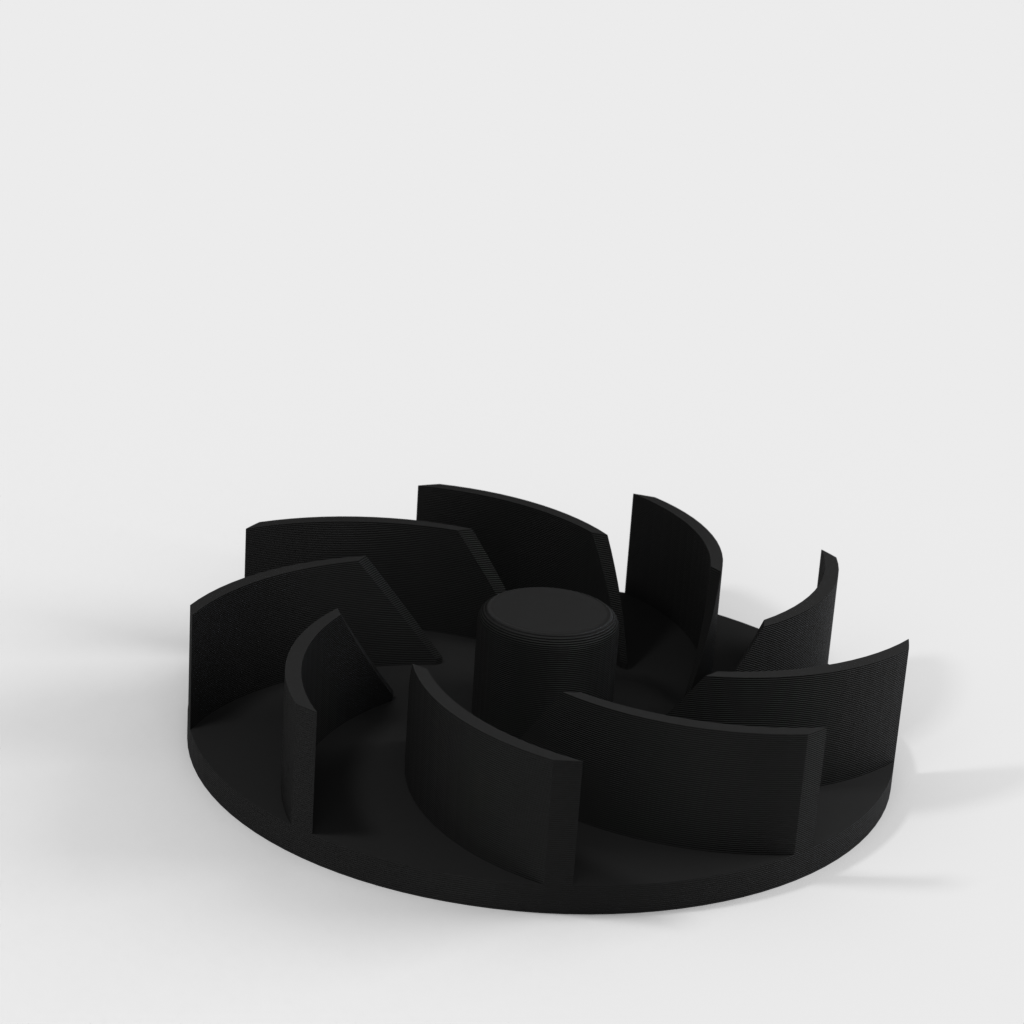 Náhradní rotor pro foukač listí Ryobi RBL1802. Dvoudílná konstrukce usnadňuje výměnu rozbitého rotoru a zajišťuje, že vaše nářadí bude opět fungovat optimálně. Pro montáž na hřídel motoru se doporučuje použít trochu teflonové pásky a vláknovou podložku, aby se zajistila správná vzdálenost od motoru a zajistilo se těsné uložení.