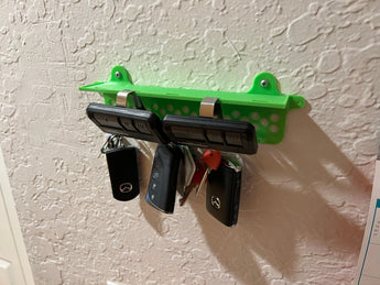 Tento nástěnný držák na klíče je navržen tak, aby efektivně uspořádal vaše klíče a drobné, důležité předměty. Montuje se přímo na zeď, což pomáhá uvolnit místo a shromáždit vaše každodenní potřeby na jednom centrálním místě.