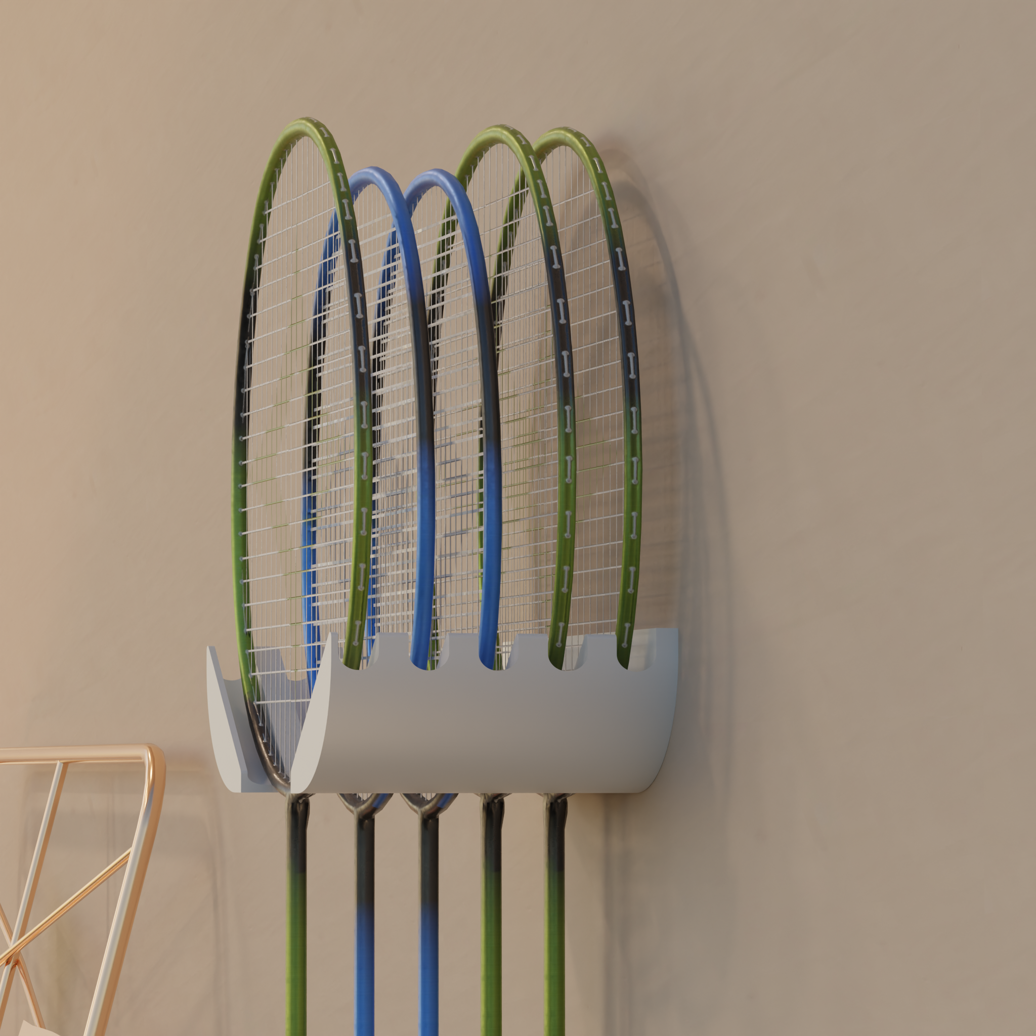 Nástěnný držák na 5 badmintonových raket