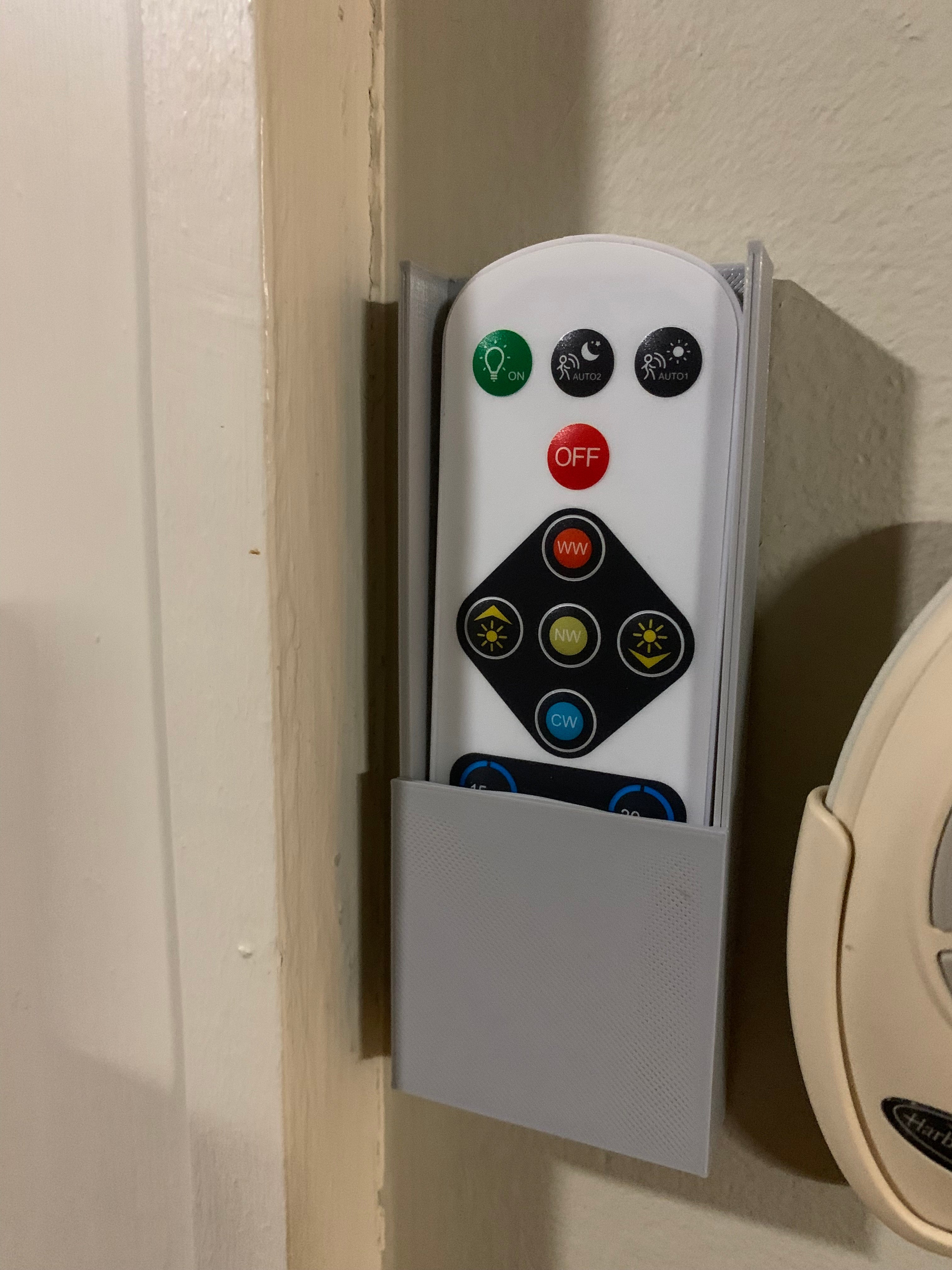 Tento nástěnný držák je navržen tak, aby poskytoval praktické úložné řešení pro váš dálkový ovladač, zejména pro ty, které jsou dodávány s dobíjecími stropními svítidly. Zajišťuje, že váš dálkový ovladač je uspořádaný a vždy na dosah. Připevněním držáku na zeď se vyhnete nepořádku na stolech a snadno najdete dálkový ovladač, když potřebujete upravit světla.
