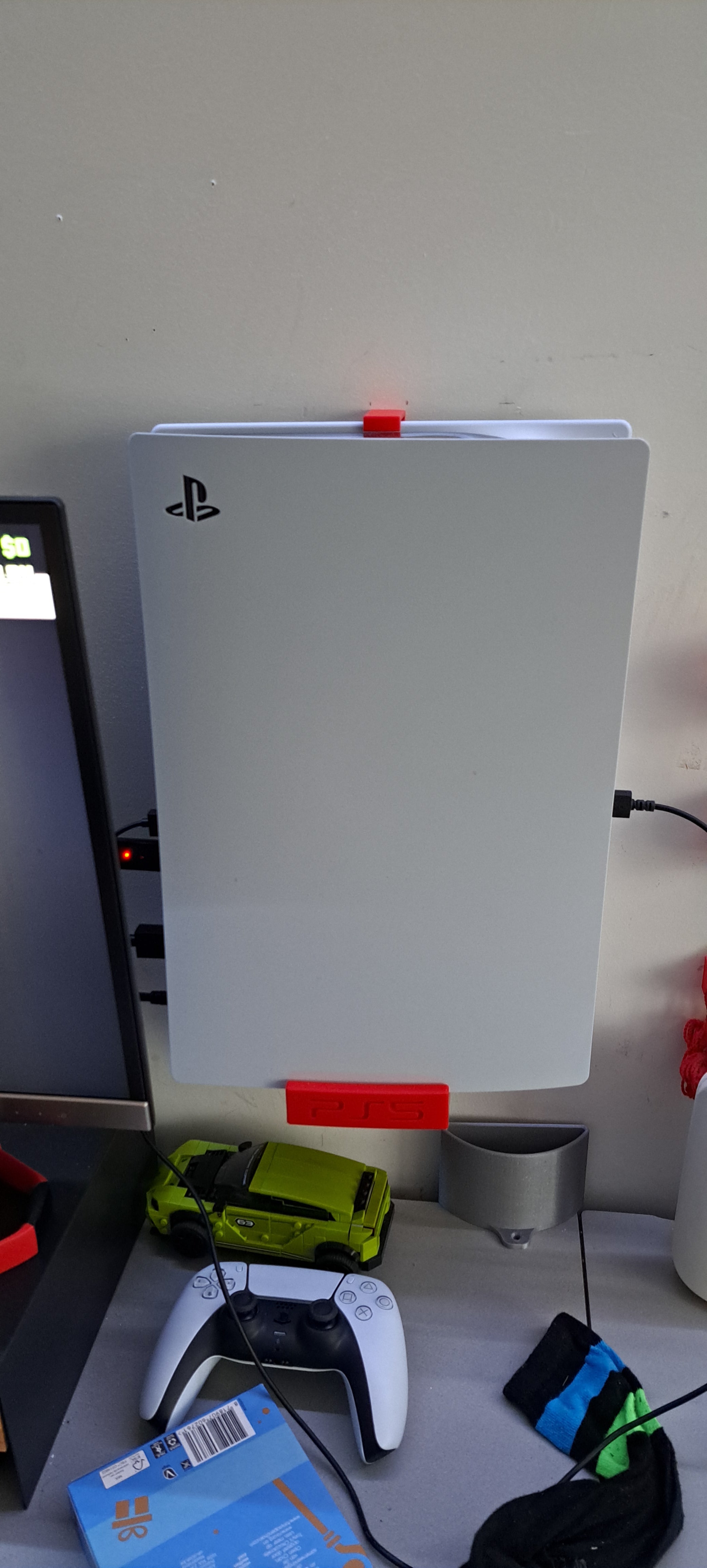 Design držáku je optimalizován tak, aby udržel vaši konzoli bezpečně na místě a zabránil jejímu převrácení, zejména pokud přidáte příslušenství, jako je stojan na ovladač k přednímu panelu. Standardní orientace umisťuje logo PS5 viditelně dopředu, s kabely směřujícími doleva. Pokud si přejete alternativní nastavení, lze držák zrcadlit tak, aby logo PS5 směřovalo ke stěně, což vám dává flexibilitu v uspořádání.