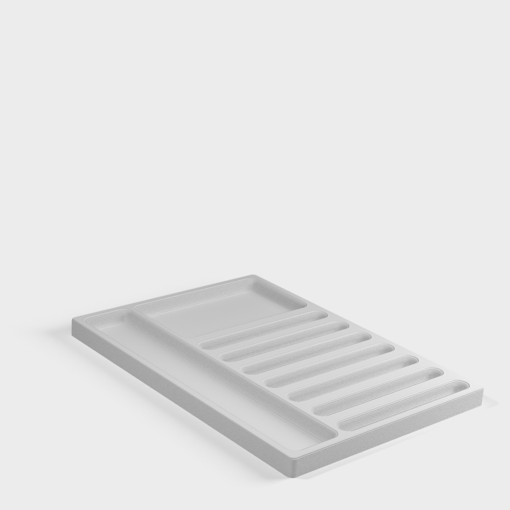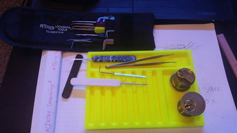 Tento praktický zásobník je navržen tak, aby zefektivnil proces obsluhy nebo přepinování zámků. Obsahuje několik speciálně navržených drážek, které usnadňují uspořádání a oddělení kolíků zámku, pružin a dalších drobných součástí. Udržováním všech dílů roztříděných a snadno dostupných přispívá zásobník k efektivnější a přesnější manipulaci se zamykacími mechanismy. Je to užitečný nástroj pro každého, kdo pracuje se zámky a chce mít přehled o mnoha malých, důležitých dílech.