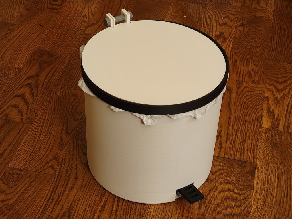 Jedná se o odpadkový koš s pedálem, který lze vytisknout. Objem je přibližně 7,5 litru / 2 galony.