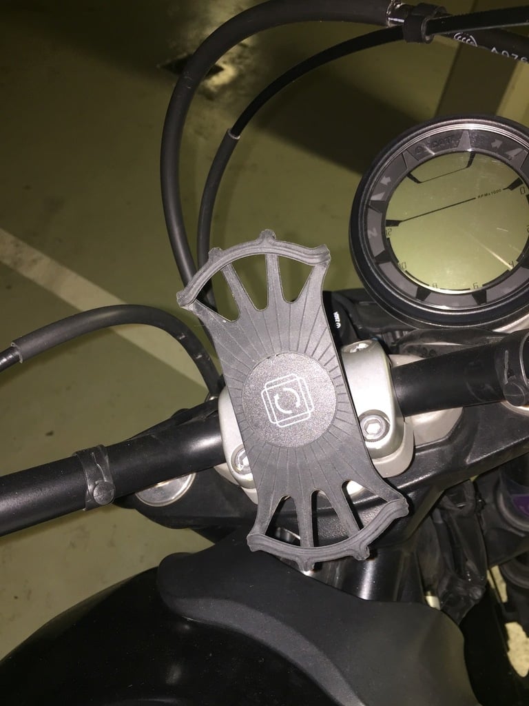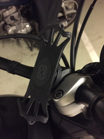 Váš smartphone je bezpečně držen na místě pomocí čtyř silných gumových pásků, které uchopí každý roh telefonu. Poté se přiložená deska namontuje na robustní základnu, která se diskrétně připevní na řídítka motocyklu. Praktickou funkcí je, že desku lze snadno sejmout a otáčet, což poskytuje optimální zobrazení a flexibilitu během jízdy.