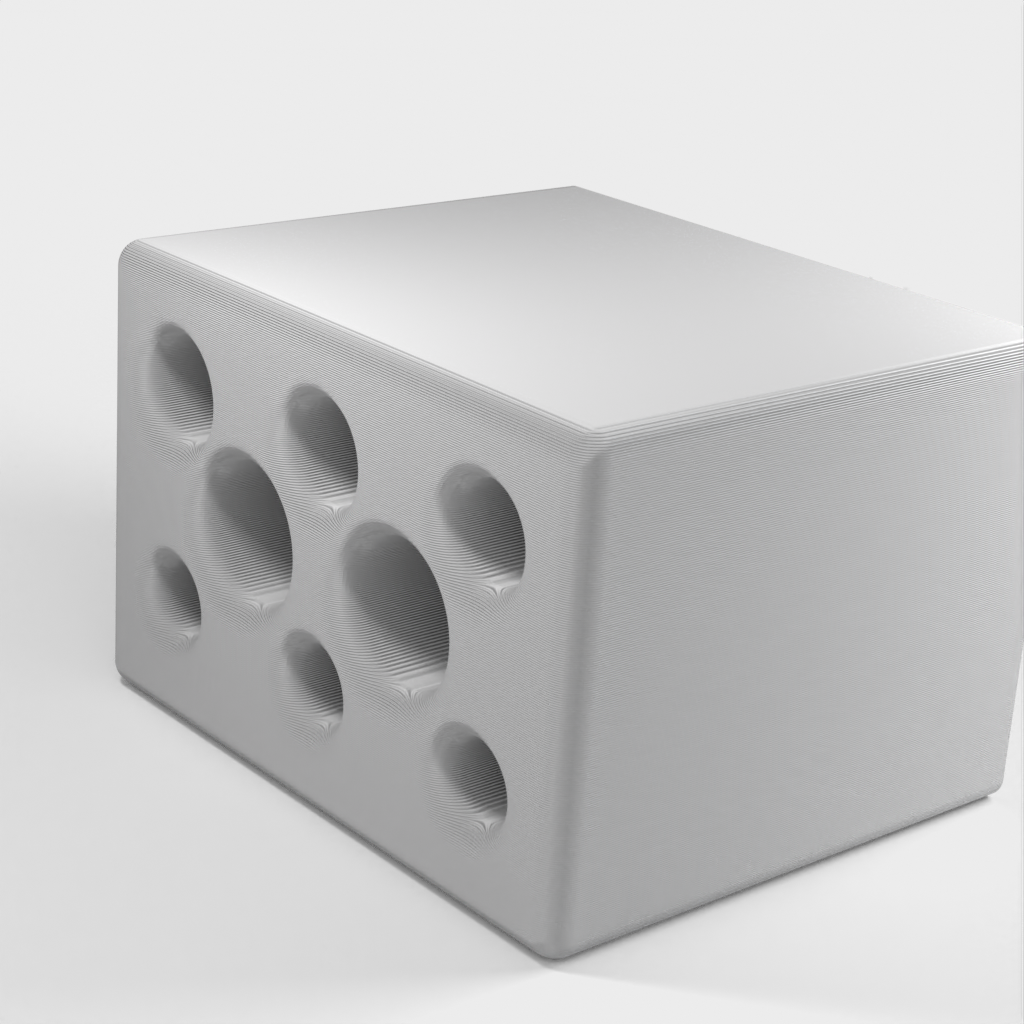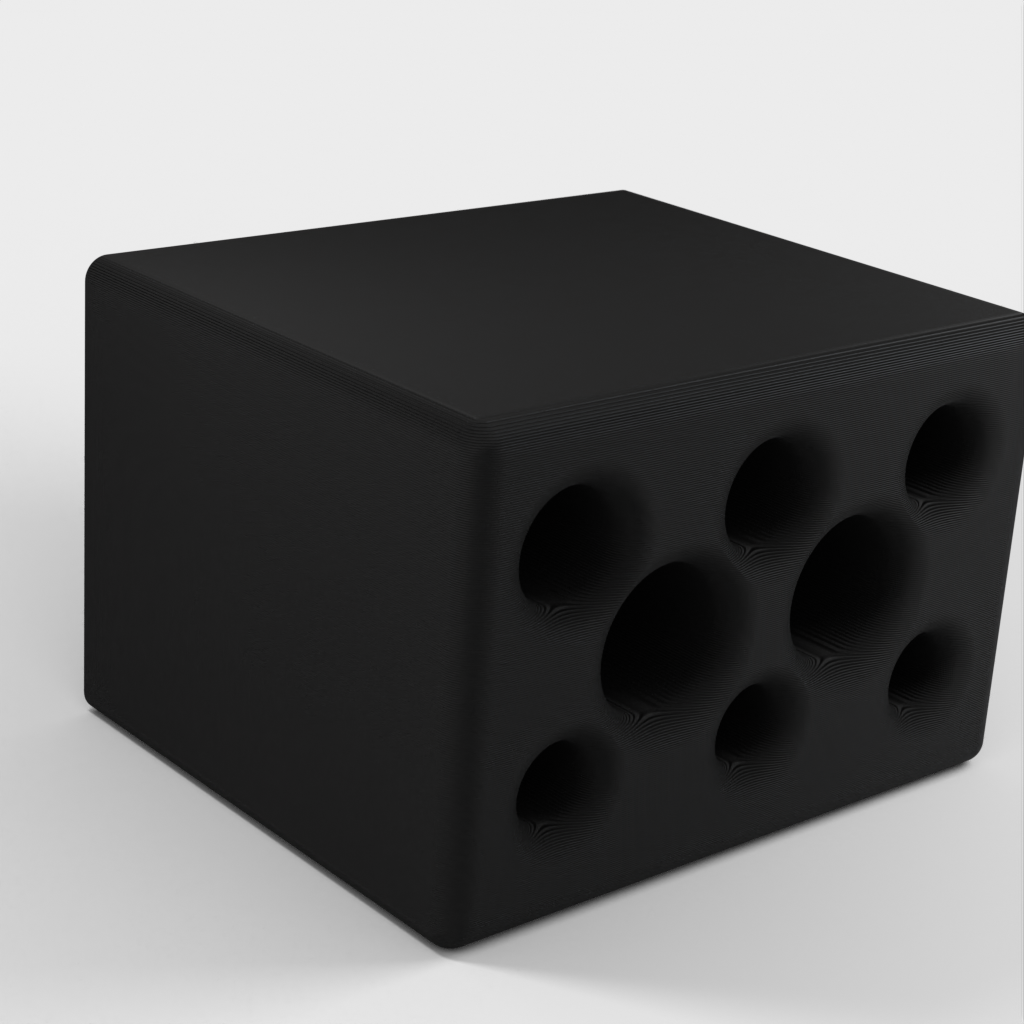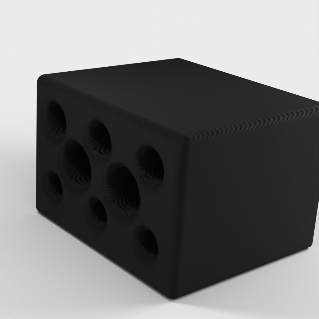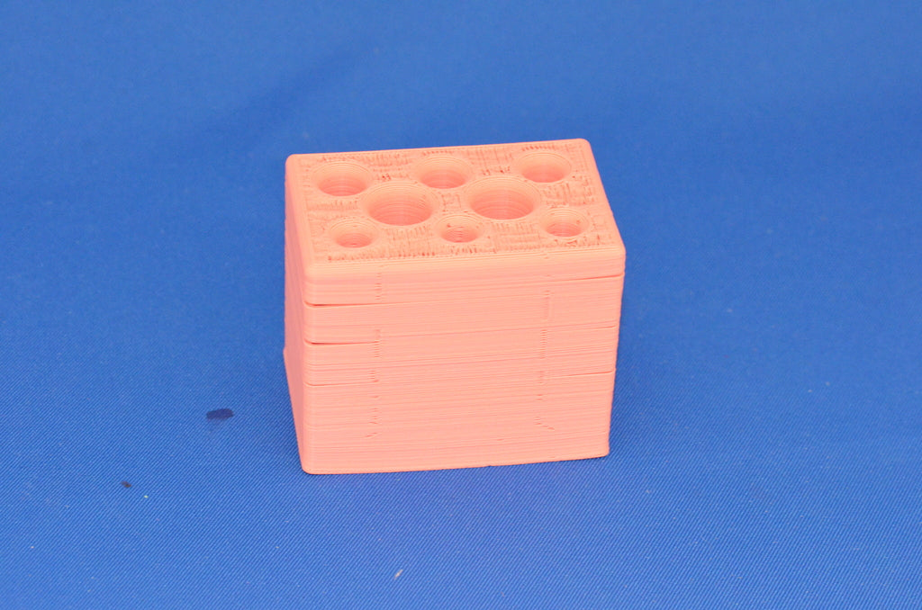 Držák na pera, tužky a další psací potřeby. Má osm různých otvorů, 3 na tužky, 3 na pera a 2 na různé předměty, například hobliny. Je vyroben z růžového plastu a je plně přenosný.