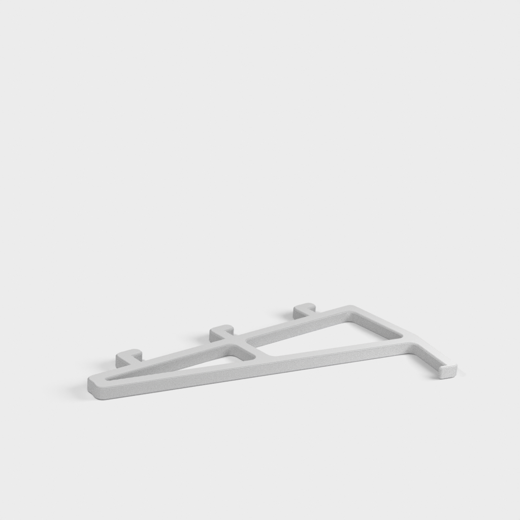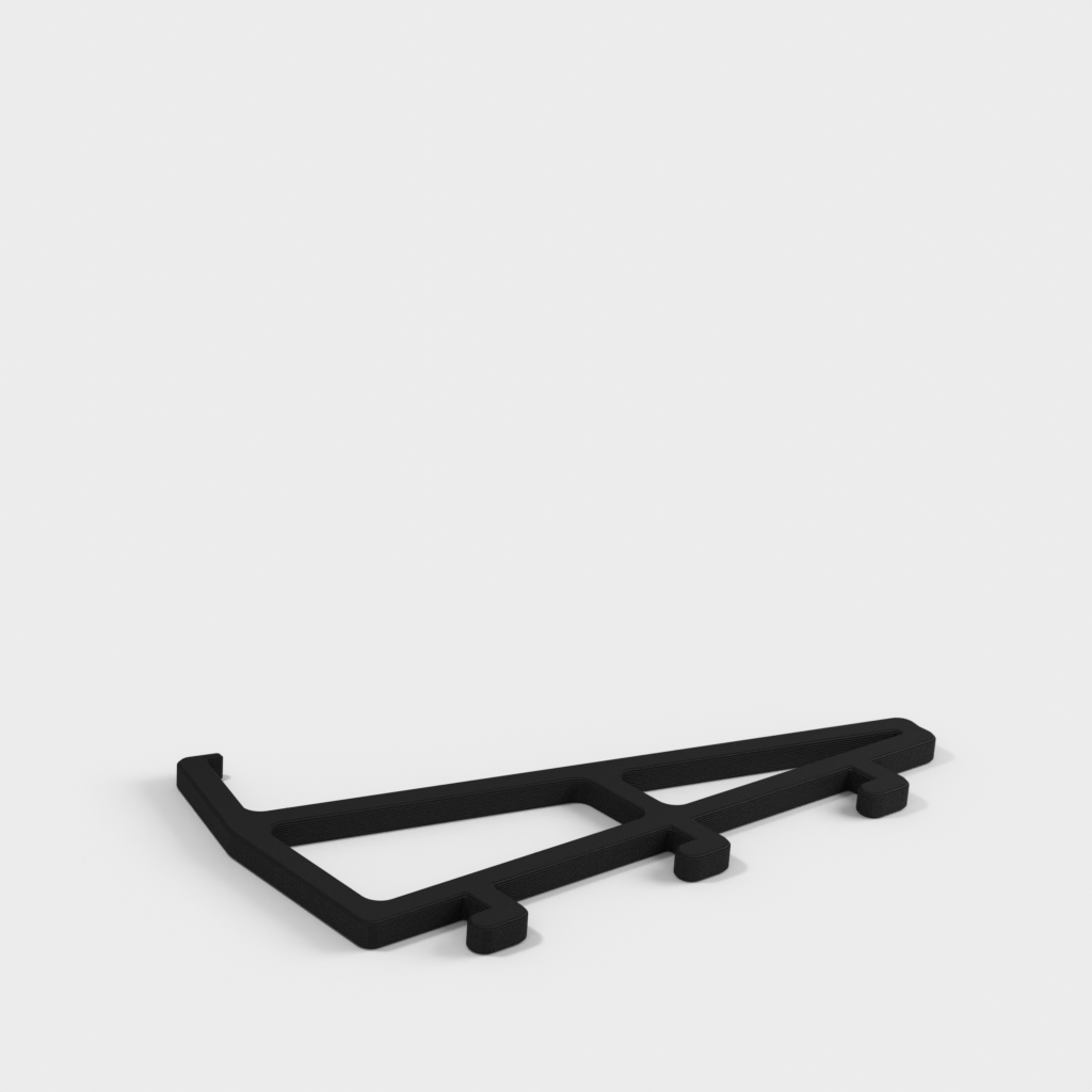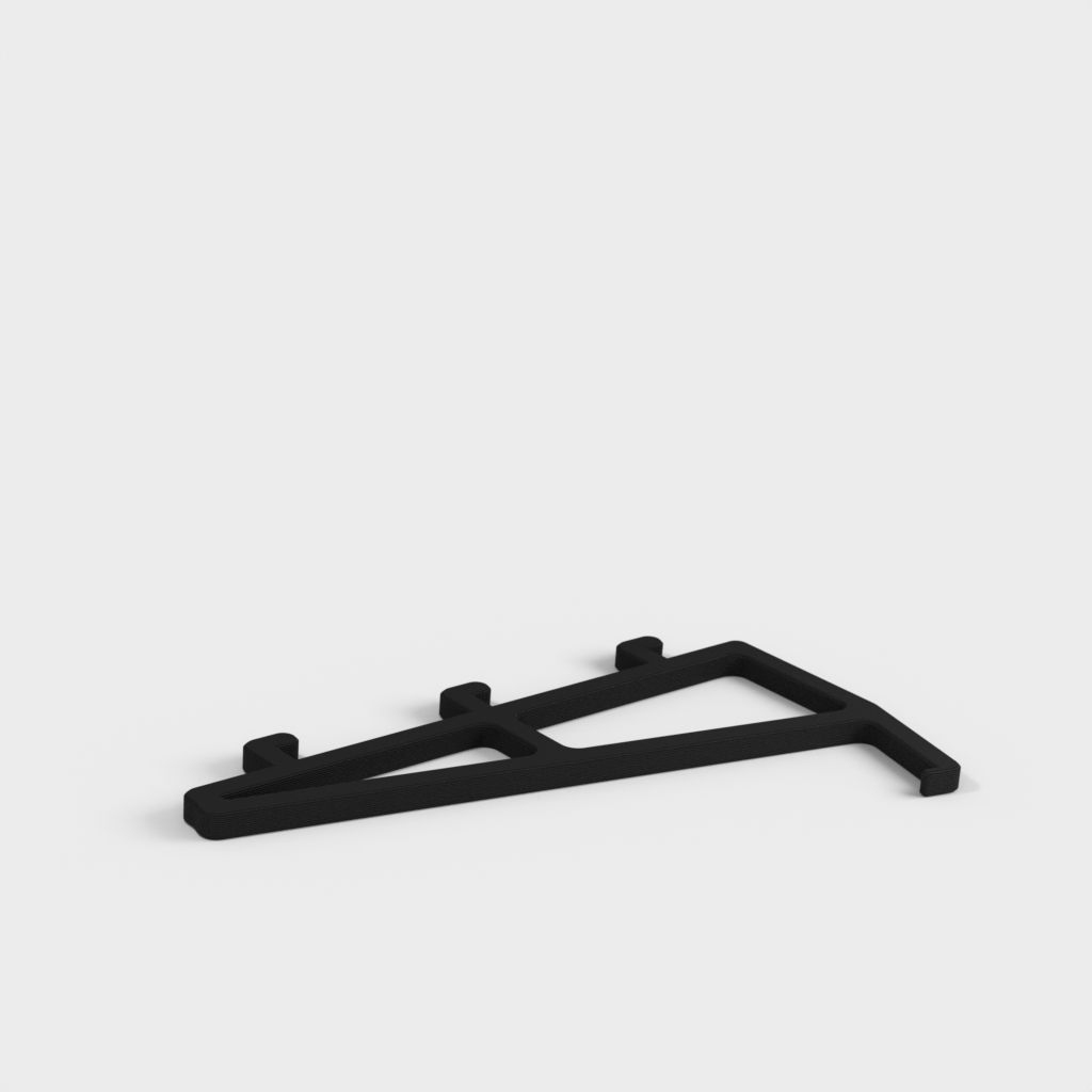 Držák klávesnice Skadis je držák klávesnice pro děrovanou desku Skadis. Velký držák klávesnice snadno pojme klávesnice s 5-7 řadami. „Police“ držáku je dlouhá 20 mm a vysoká přibližně 115 mm, což ponechává dostatek místa nad držákem pro vyšší desky. Menší držák klávesnice se hodí pro klávesnice s až 5 řadami, a to i přes náš počáteční plán použít na nich pouze 4 řady. Police je stále dlouhá 20 mm, ale pouze 77 mm vysoká.