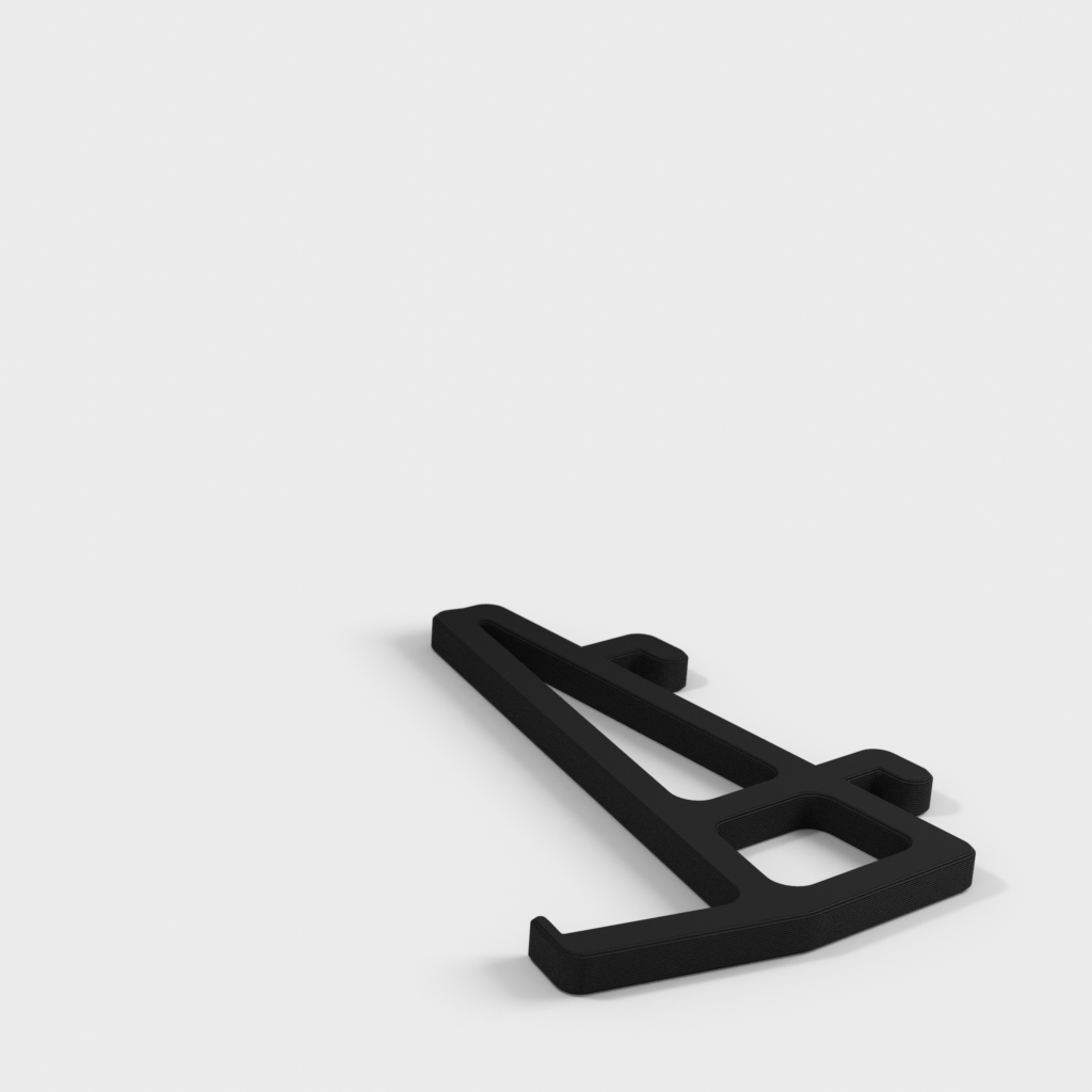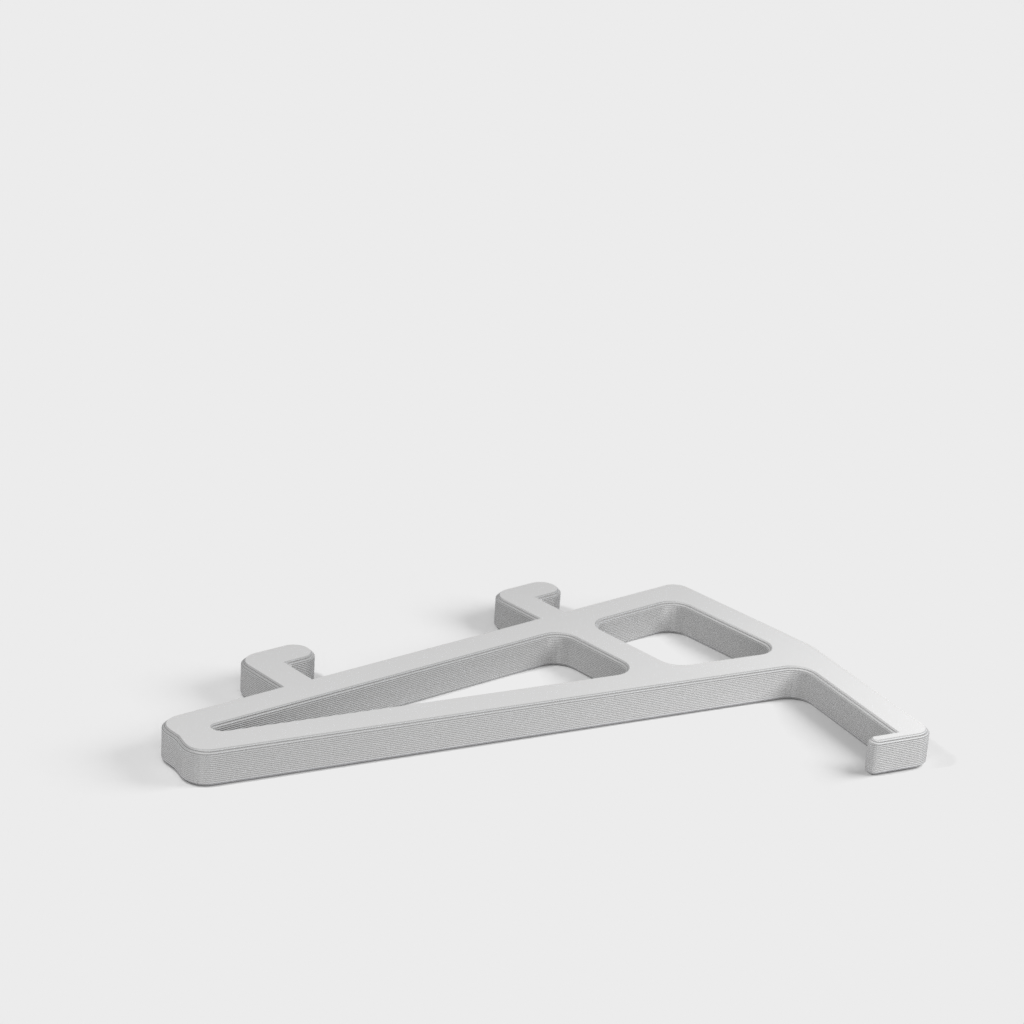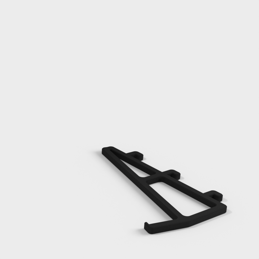 Držák klávesnice Skadis je držák klávesnice pro děrovanou desku Skadis. Velký držák klávesnice snadno pojme klávesnice s 5-7 řadami. „Police“ držáku je dlouhá 20 mm a vysoká přibližně 115 mm, což ponechává dostatek místa nad držákem pro vyšší desky. Menší držák klávesnice se hodí pro klávesnice s až 5 řadami, a to i přes náš počáteční plán použít na nich pouze 4 řady. Police je stále dlouhá 20 mm, ale pouze 77 mm vysoká.