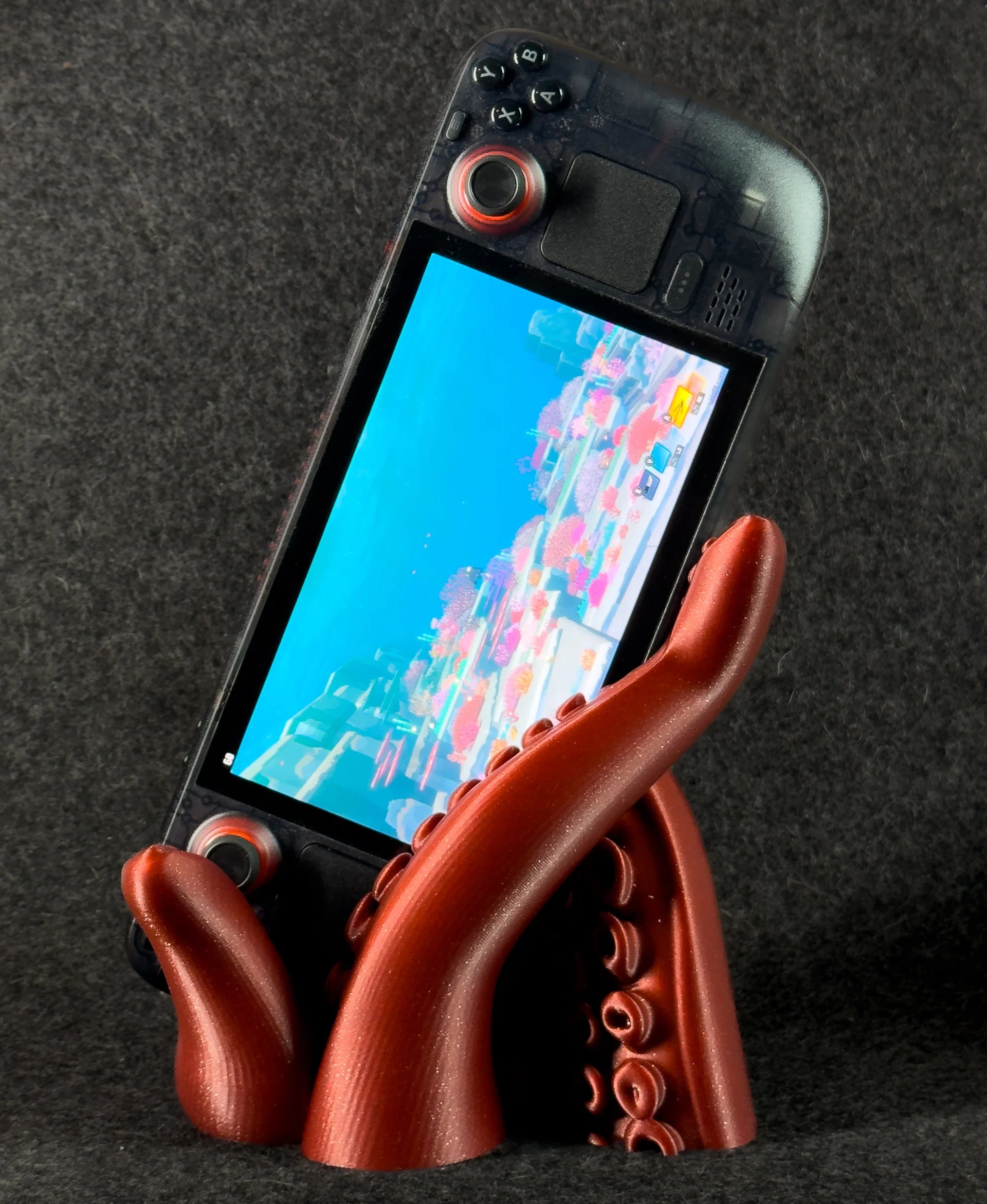 Tento jedinečný stojan poskytuje vašemu SteamDeck stabilní a nápadnou základnu. Skvělý design s chapadly funguje perfektně jako stolní dok pro vaši herní sestavu. Praktická drážka pro kabel zajišťuje, že váš kabel USB-C zůstane úhledně na svém místě, takže můžete snadno nabíjet při hraní.