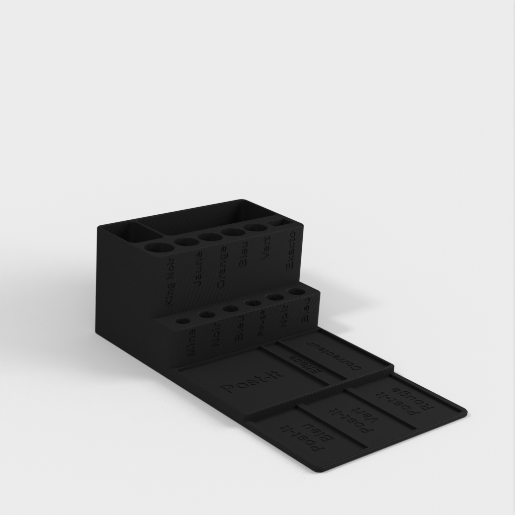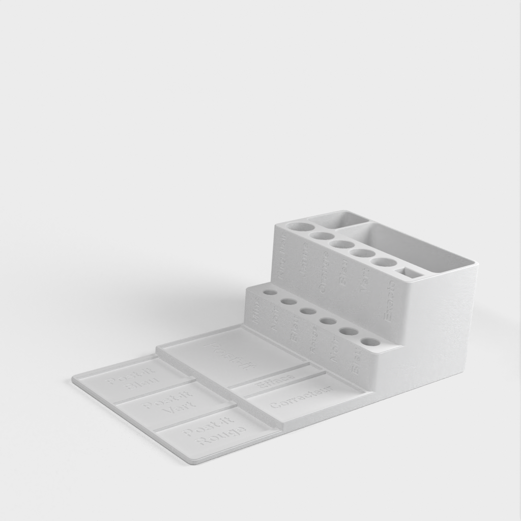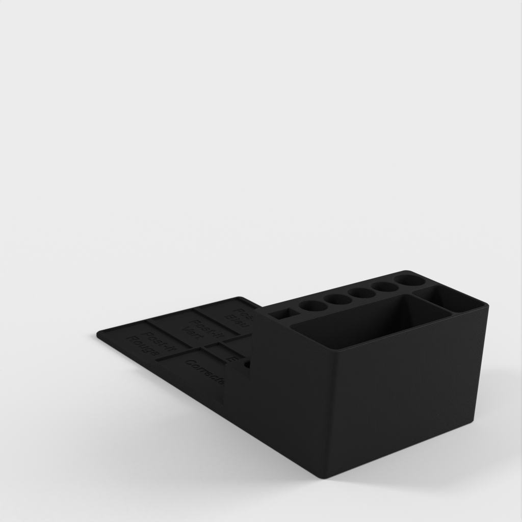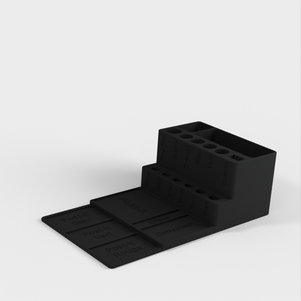 Jedná se o stolní organizér určený k efektivnímu uspořádání každodenních kancelářských pomůcek. Tento organizér poskytuje úložný prostor pro různé pomůcky, jako jsou pera, tužky, fixy a další psací potřeby, které jsou nezbytné pro každodenní používání v kanceláři. Udržujte svůj pracovní stůl čistý a uklizený a zvyšte svou produktivitu tím, že budete mít své kancelářské nástroje snadno na dosah.