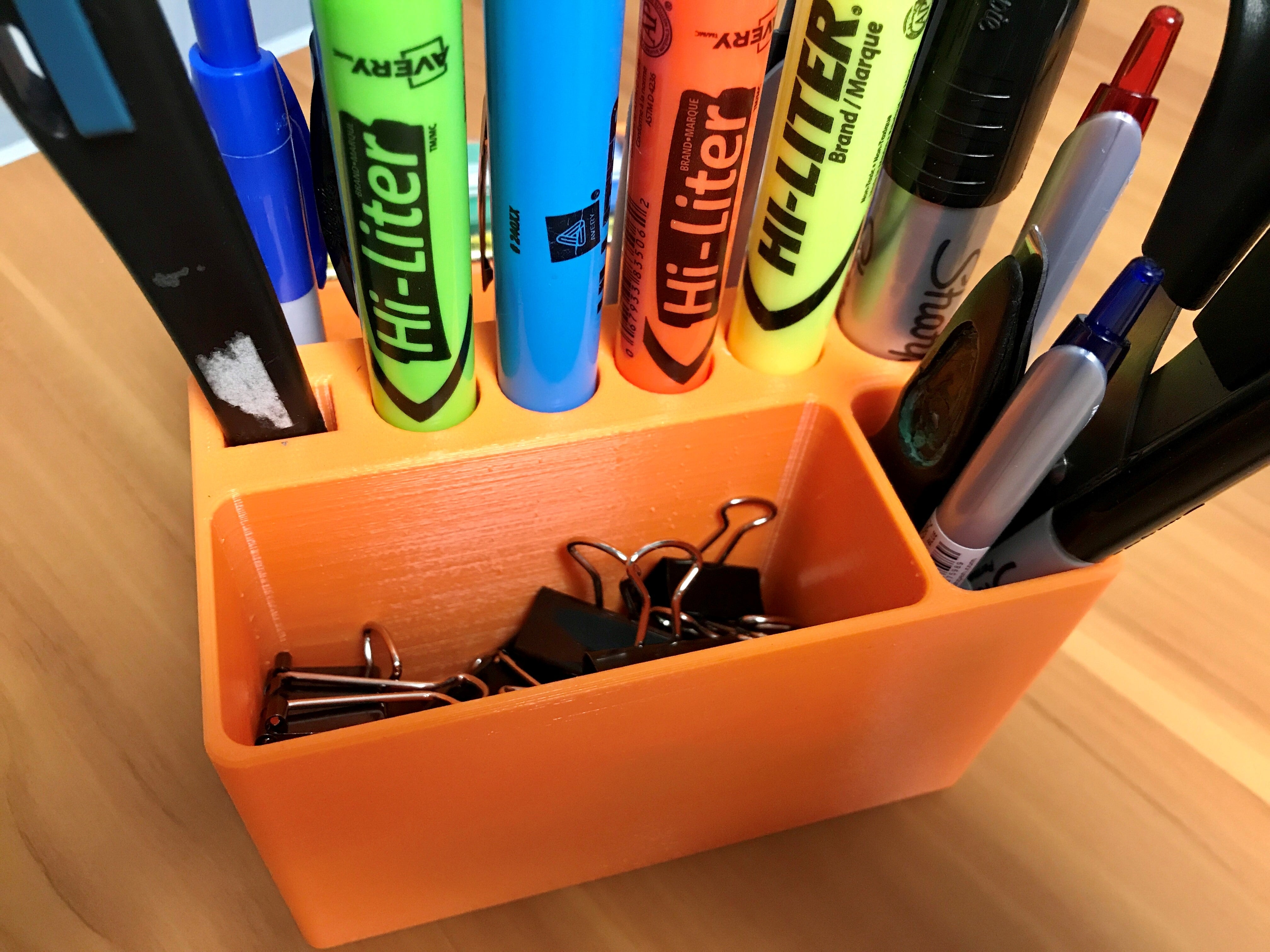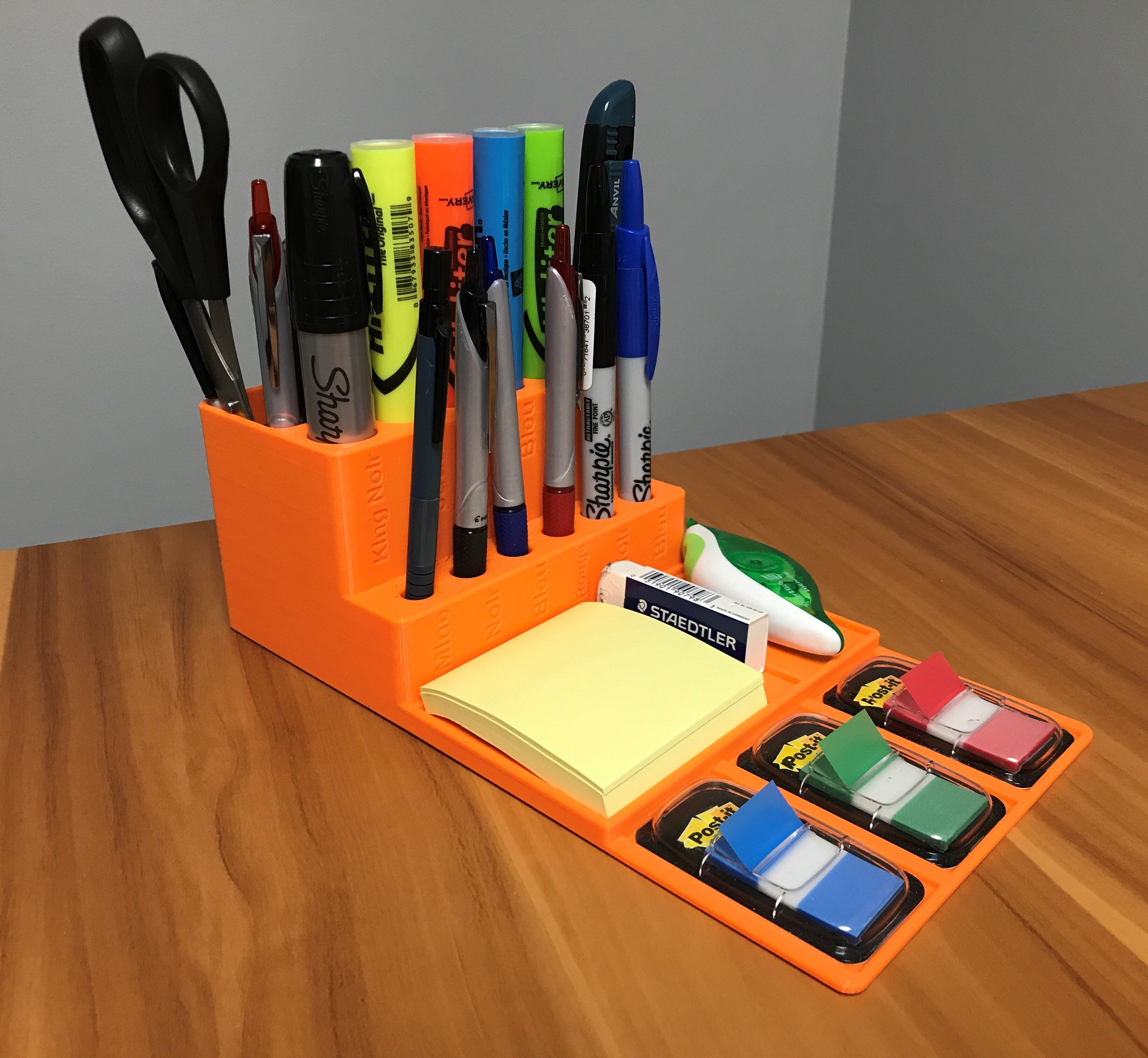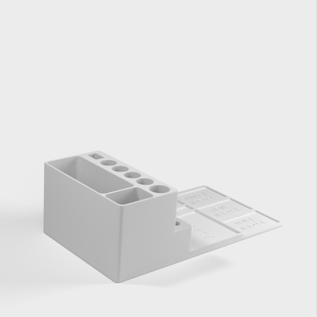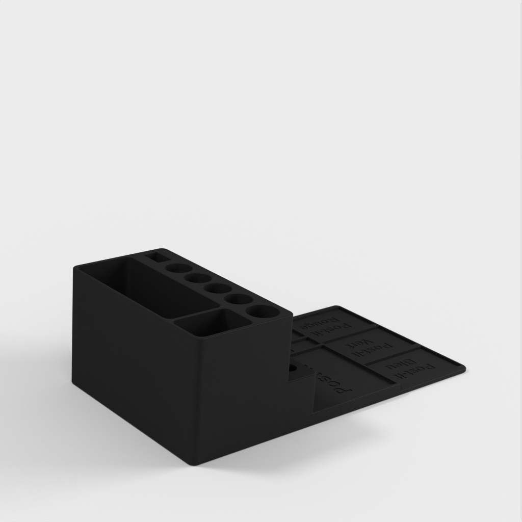 Jedná se o stolní organizér určený k efektivnímu uspořádání každodenních kancelářských pomůcek. Tento organizér poskytuje úložný prostor pro různé pomůcky, jako jsou pera, tužky, fixy a další psací potřeby, které jsou nezbytné pro každodenní používání v kanceláři. Udržujte svůj pracovní stůl čistý a uklizený a zvyšte svou produktivitu tím, že budete mít své kancelářské nástroje snadno na dosah.