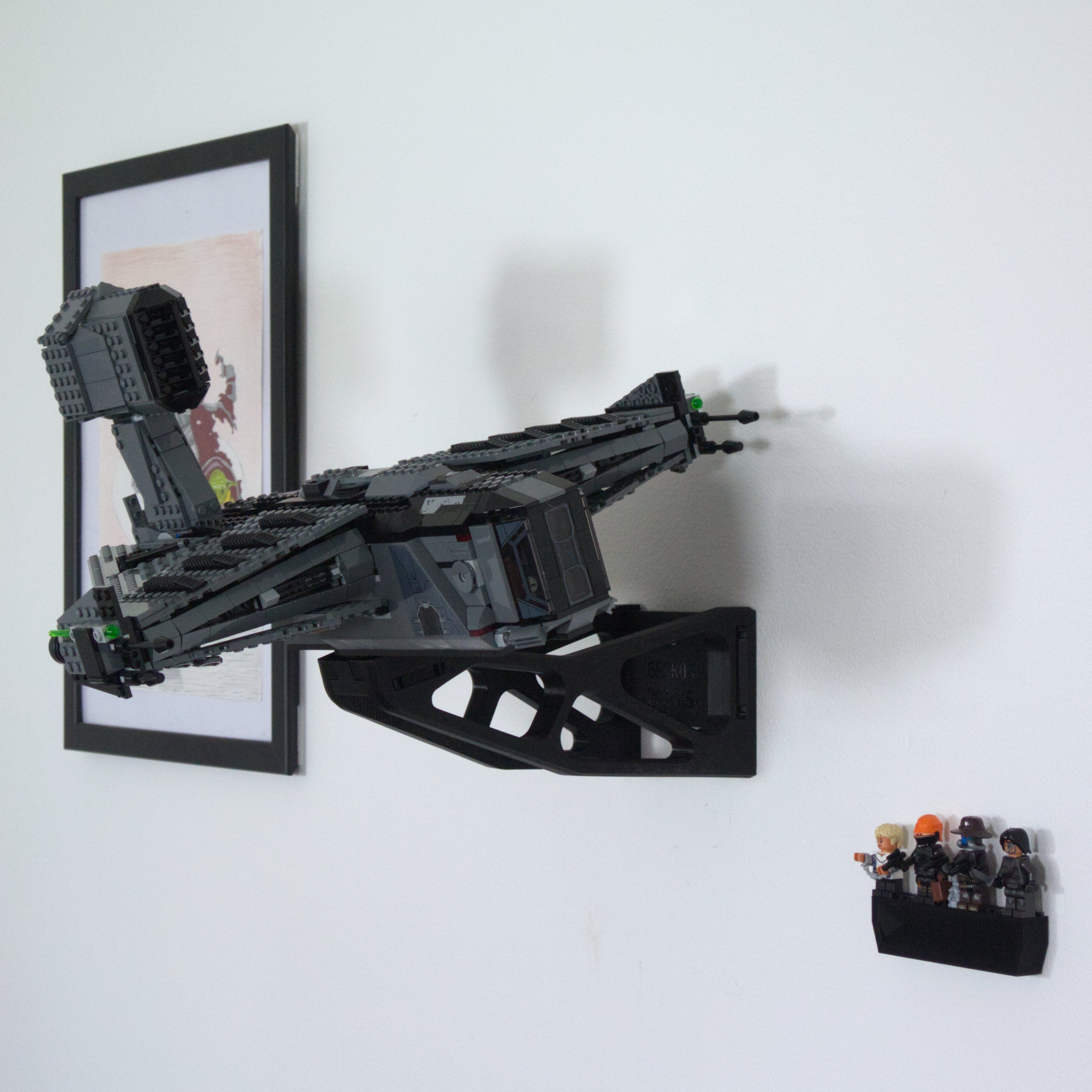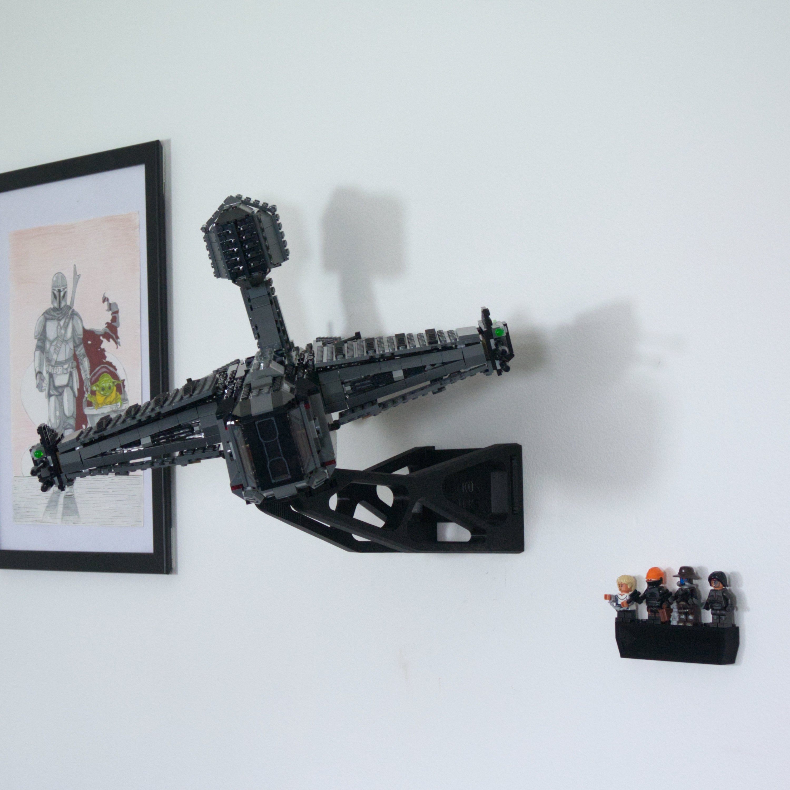 Dette vægbeslag er designet til LEGO Star Wars The Justifier sæt 75323. Det giver mulighed for at fremvise modellen vendt mod venstre, højre eller vinklet, samtidig med at sættet nemt kan tages ned. Der medfølger en separat holder til minifigurer, og monteringen kræver kun én skrue i væggen.