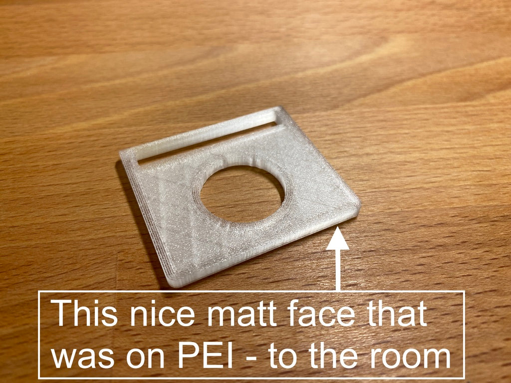 Upozorňujeme, že nejlepší strana, tedy matná strana směřující k PEI fólii při tisku, by měla směřovat do místnosti, zatímco druhá strana může směřovat k oknu, kde ji nikdo neuvidí.
