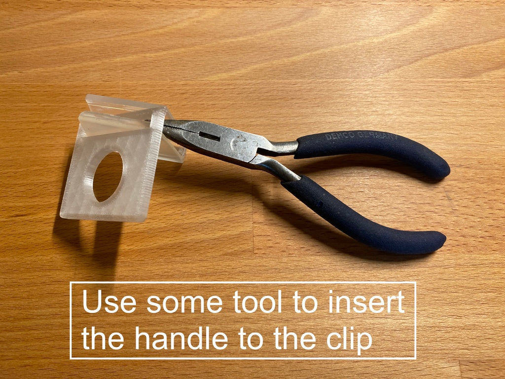 Jedinou nevýhodou tohoto výrobku je, že k otevření klipu a zasunutí kliky je třeba použít nějaké nářadí.