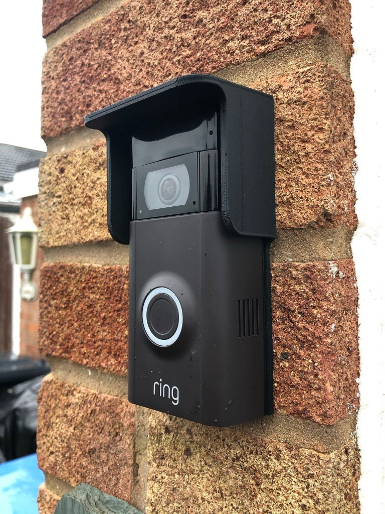 Povětrnostní štít pro Ring Doorbell 2. Nasazuje se přímo za domovní zvonek pomocí originálních upevňovacích bodů a nabízí ochranu před deštěm, aniž by bránil ve výhledu.