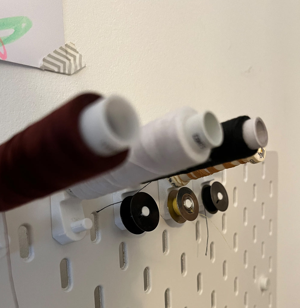 Držák na šicí nit IKEA SKADIS je ideálním řešením pro udržení pořádku ve vašich cívkách nití. S tímto držákem můžete snadno uspořádat velké i malé cívky nití, což vám pomůže vyhnout se záměně barev, jako je například námořnická modrá a černá. Držák je navržen tak, aby dokonale pasoval do vašeho organizačního systému IKEA SKADIS, což usnadňuje vytvoření úhledného a funkčního pracovního prostoru pro vaše ruční práce.