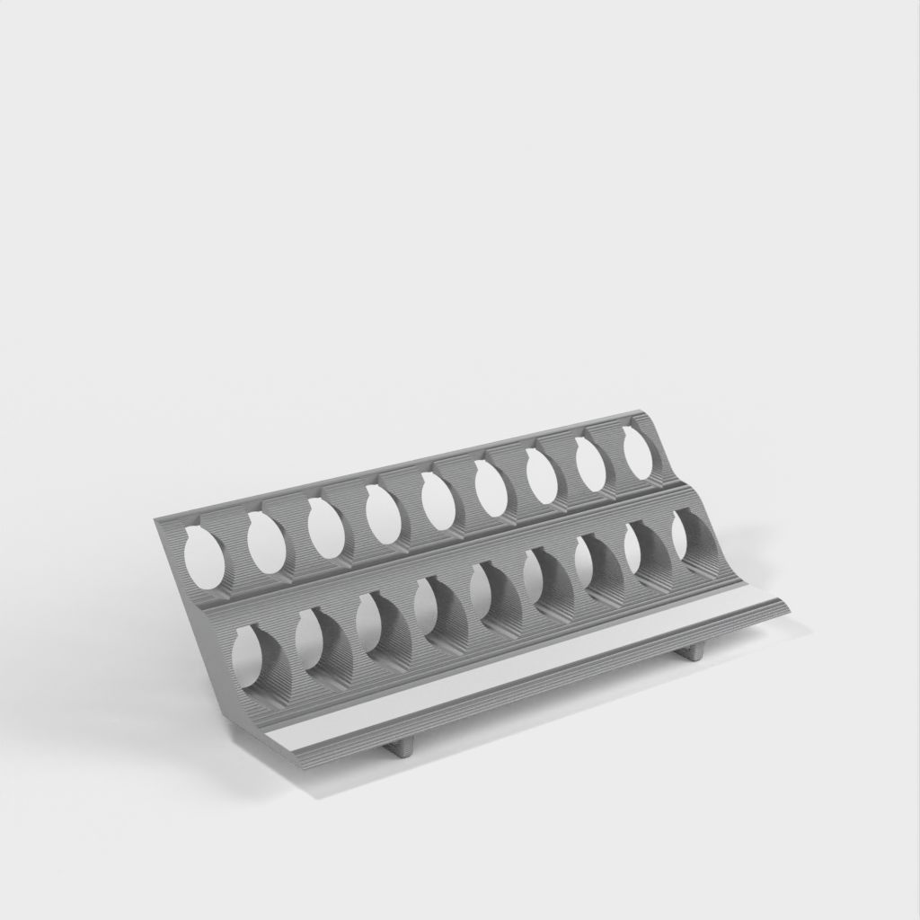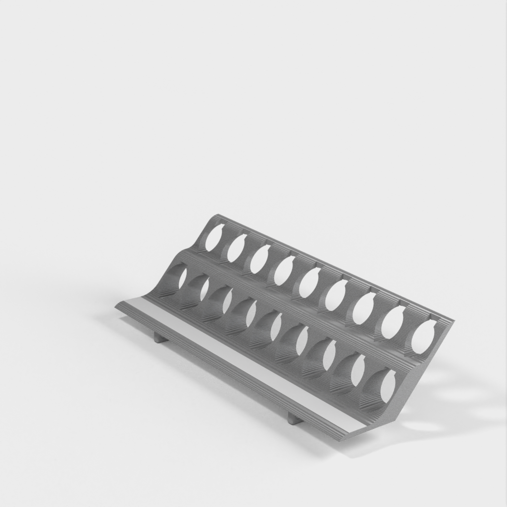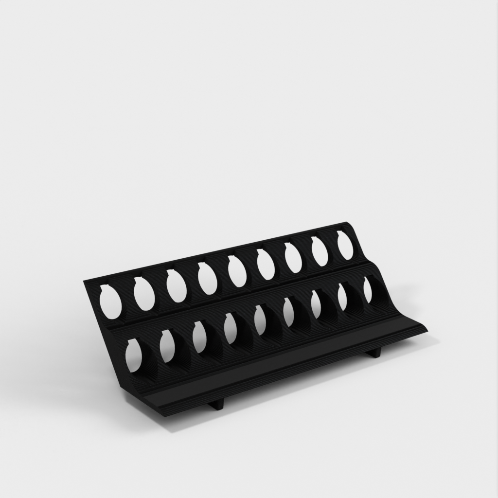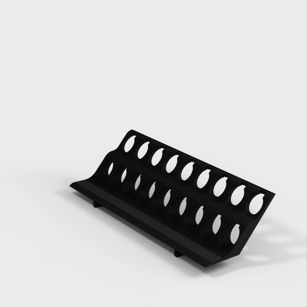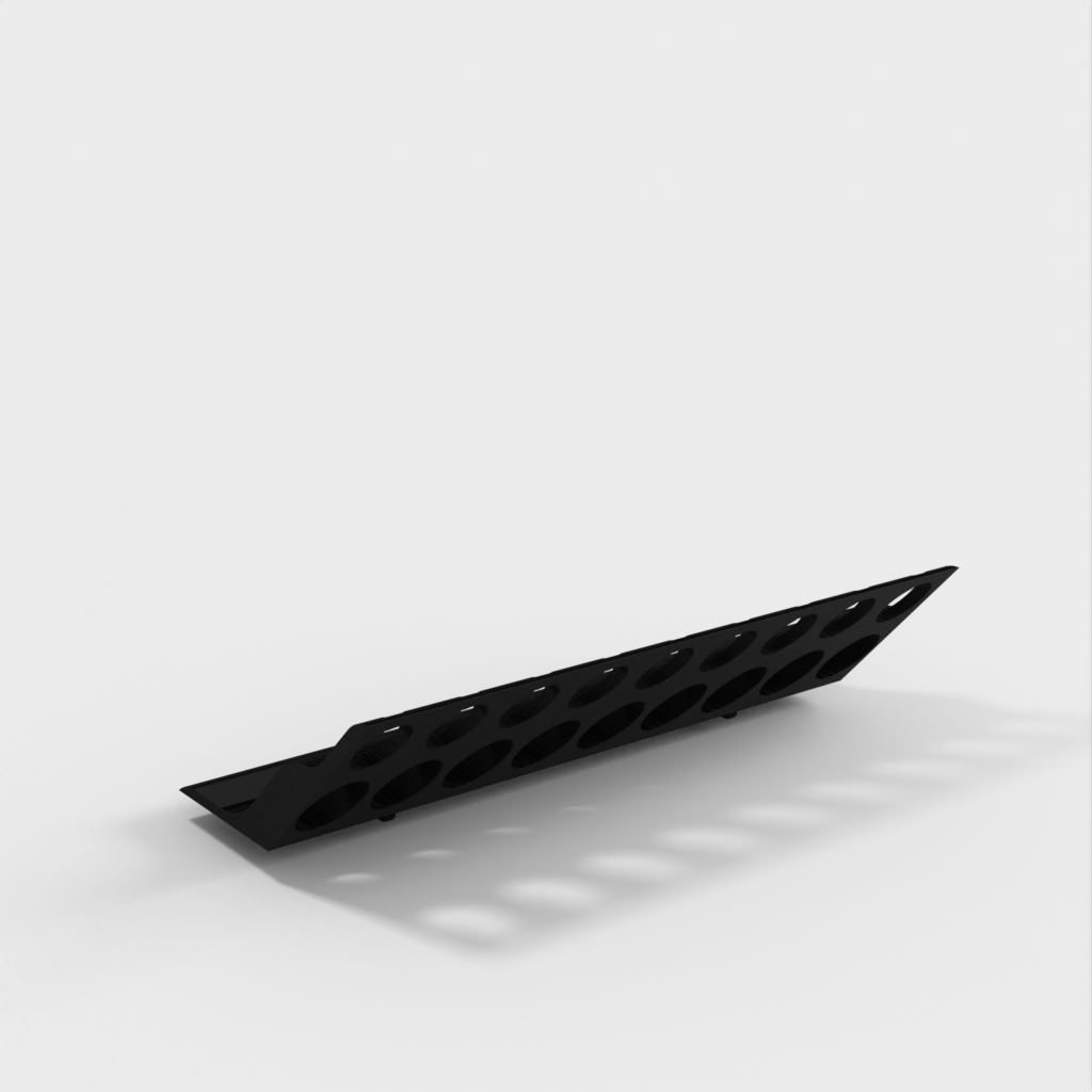 Držák per Posca je příslušenstvím k tabuli IKEA SKÅDIS. Je určen pro držení per Posca velikosti PC-3M a PC-5M. Jedna část držáku pojme devět malých per a devět velkých per. Díky tomu můžete snadno ukládat a organizovat pera Posca.
