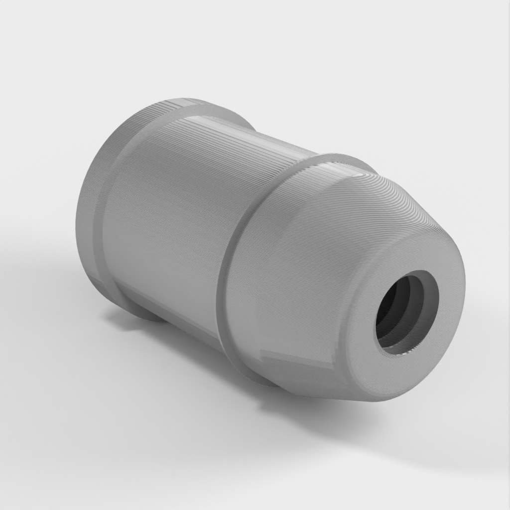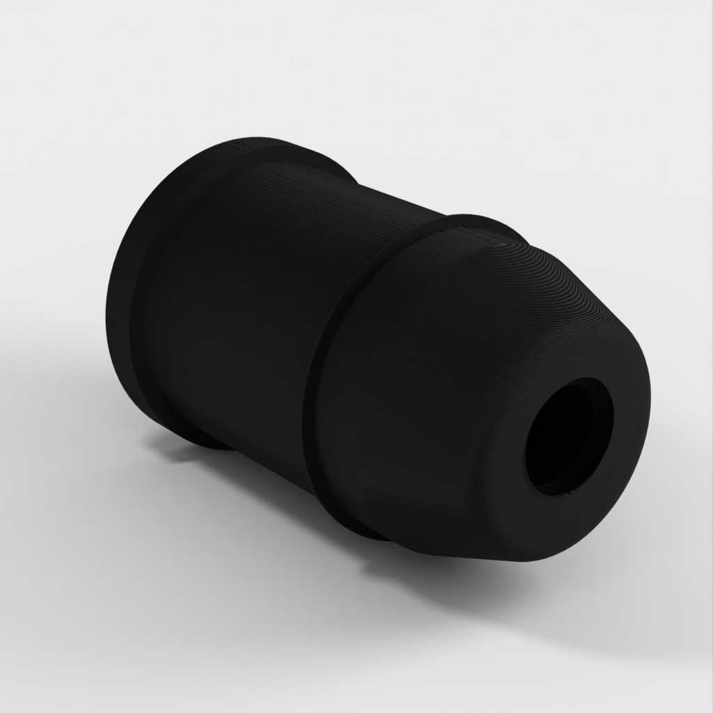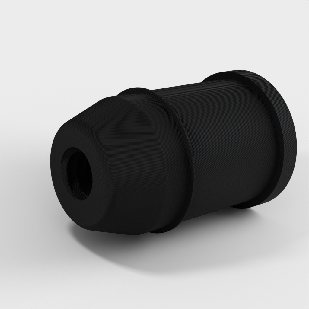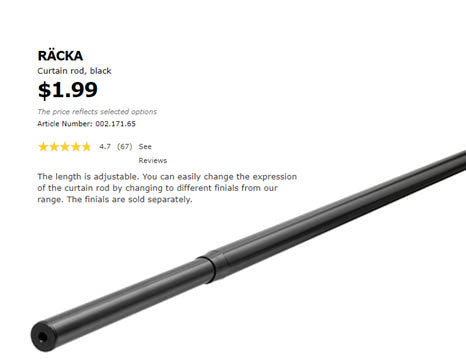Jedná se o koncovou zástrčku pro záclonovou tyč IKEA Räcka. Koncová zástrčka je jednoduchá zástrčka, která má otvor se závitem pro připevnění knoflíku. Zátka má podél válce malé vyvýšení, které ji pomáhá udržet na místě. Každá tyč má dva průměry tyčí - vnitřní tyč je umístěna uvnitř vnější tyče, takže lze nastavit celkovou délku. Pro vnitřní i vnější tyč jsou k dispozici náhradní díly.