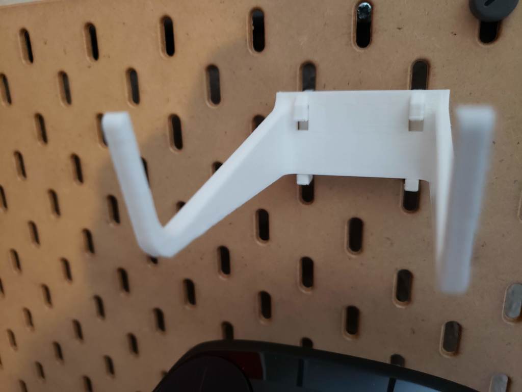Toto je držák ovladače pro univerzální hák Skadis. Je navržen tak, aby dokonale pasoval na vaši desku s kolíčky Skadis, aniž by se viklal nebo bylo nutné háčky brousit. Lze jej snadno vytisknout jako samostatné díly.