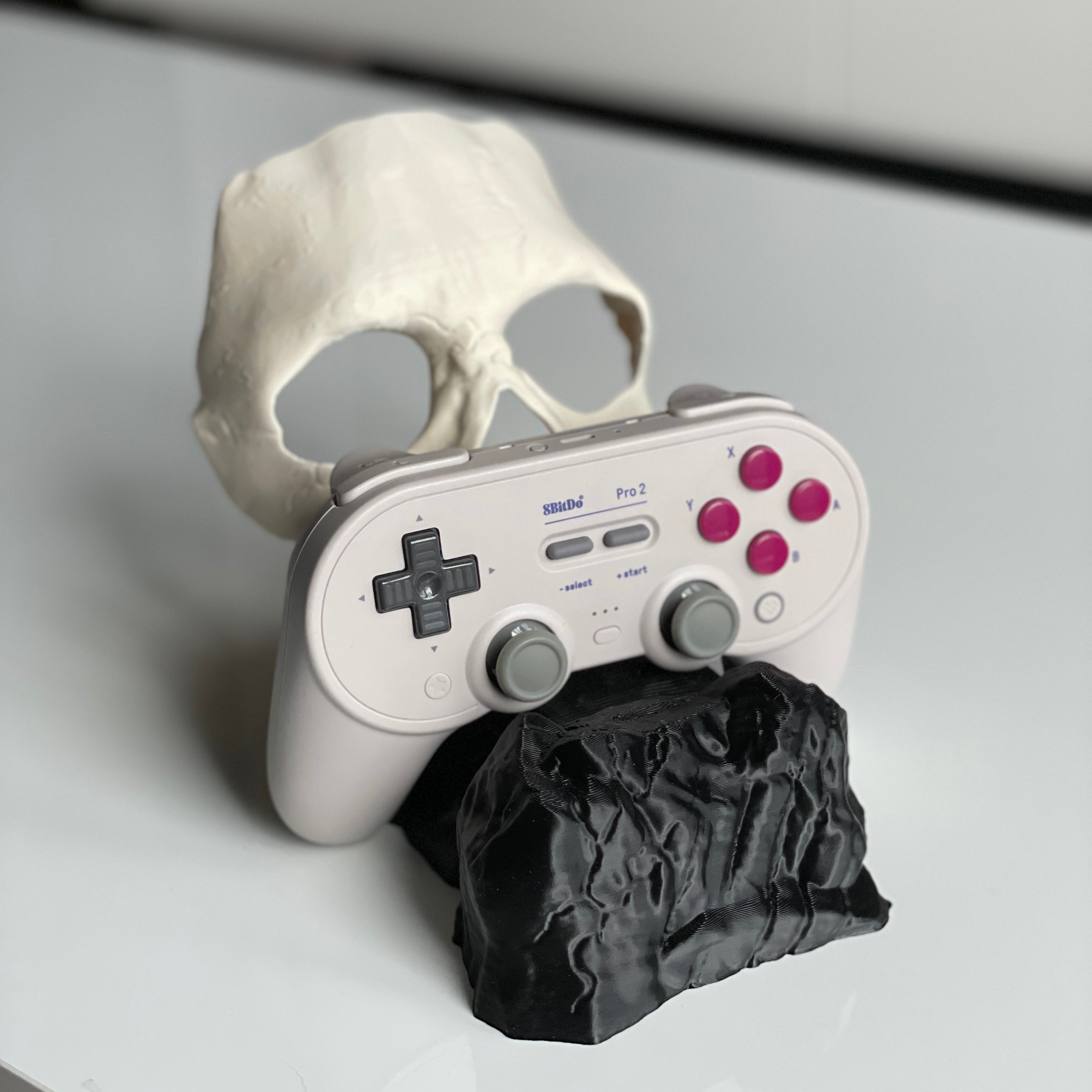 - Ovladač spočívá na kamenné základně a opírá se o masku Ghost pro dramatický vzhled.