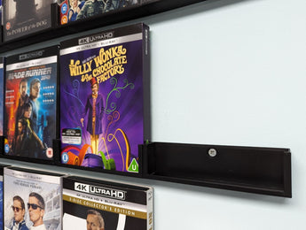 Nástěnný držák je dimenzován tak, aby se do něj vešly standardní pouzdra Blu-ray 4K (135 mm x 170 mm x 15 mm) a zároveň nabízí určitou flexibilitu pro pouzdra s papírovými obaly. Díky inteligentnímu uzamykacímu systému lze propojit několik jednotek, což zajišťuje, že vaše pouzdra visí v úhledné a rovné řadě bez zešikmení.
