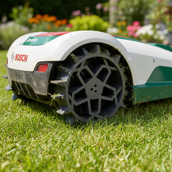 Upgradujte svou sekačku Bosch Indego S500 těmito speciálně navrženými zadními koly, která výrazně zlepšují přilnavost na nerovných a vlhkých trávnících. Hluboký profil zabraňuje robotovi uvíznout, zatímco robustní konstrukce zajišťuje stabilitu. Ideální řešení pro optimalizaci výkonu robotické sekačky na vaší zahradě.