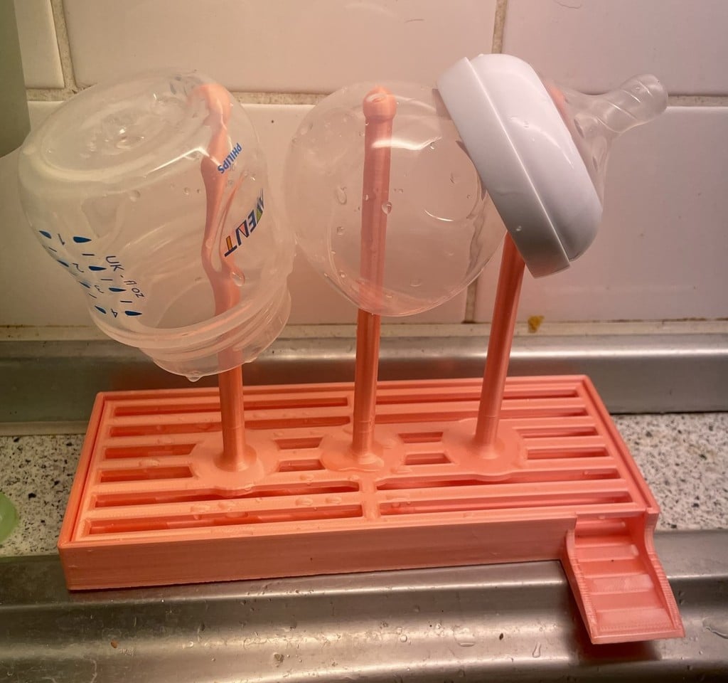 Design stojanu je zvláště výhodný pro kuchyně s omezeným prostorem pro sušení. Integrovaný držák na láhve poskytuje další funkčnost, takže můžete snadno skladovat láhve ve svislé poloze a nechat je efektivně uschnout.