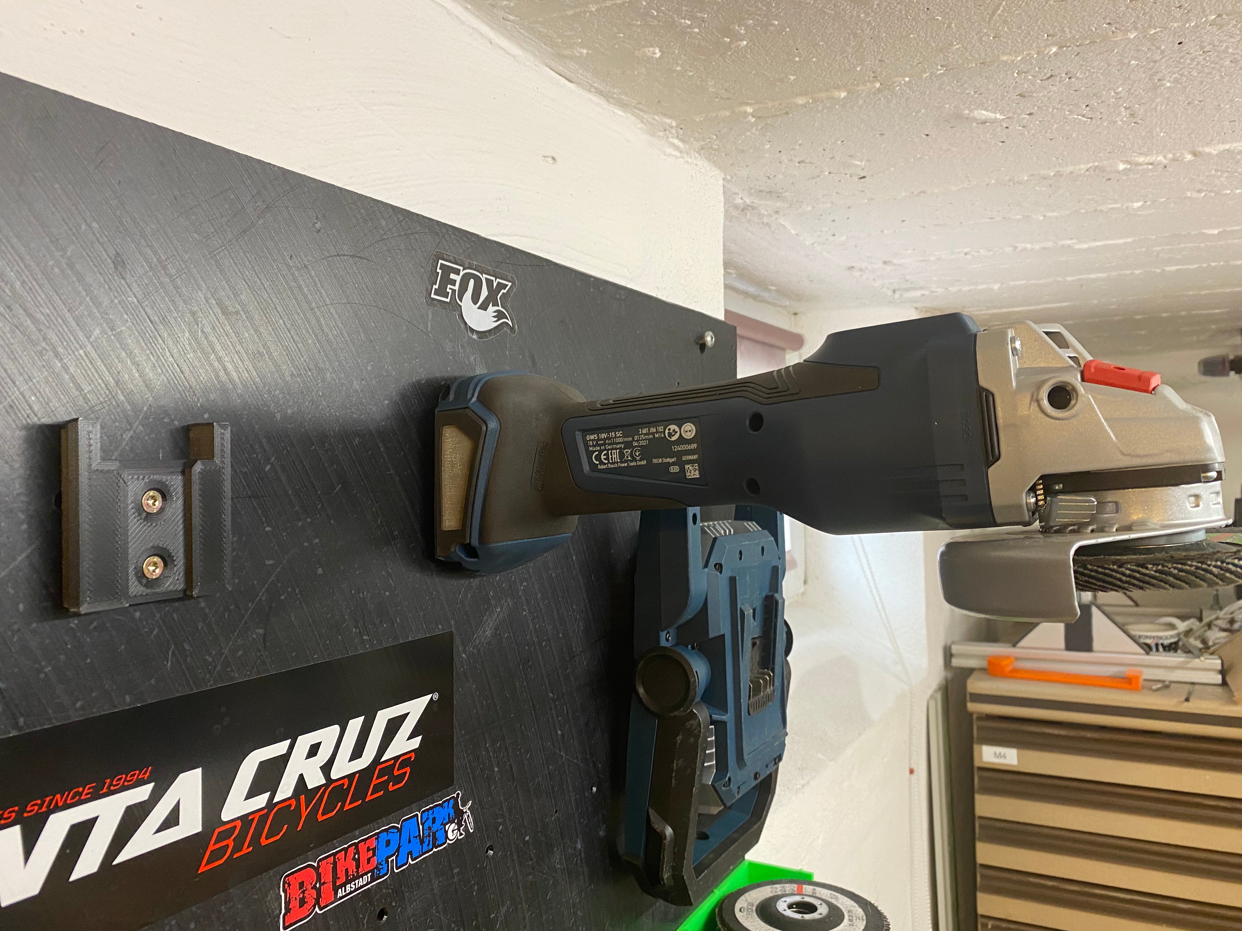 Jednoduchý a robustní nástěnný držák pro profesionální (modré) nářadí Bosch 18V, takže vaše nářadí může být umístěno na stěně.