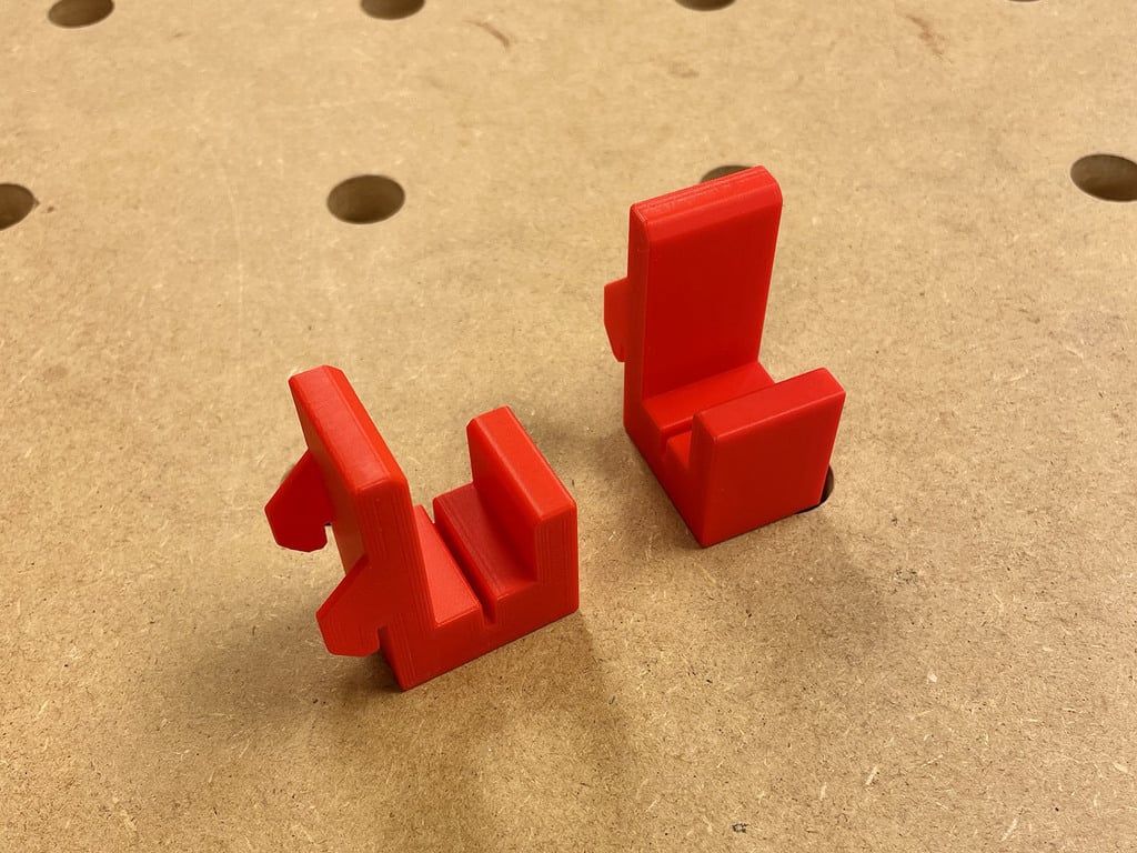 Držák je konstruován se zkoseným otvorem, který přesně odpovídá tvaru ocelového čtverce, což zajišťuje optimální usazení bez ohledu na to, jak se jej rozhodnete zavěsit. Upravené zadní výstupky na držáku jsou širší a mají mírné zúžení, což zaručuje stabilní a těsné upevnění na děrované desce, takže vaše čtverce zůstanou bezpečně na svém místě.