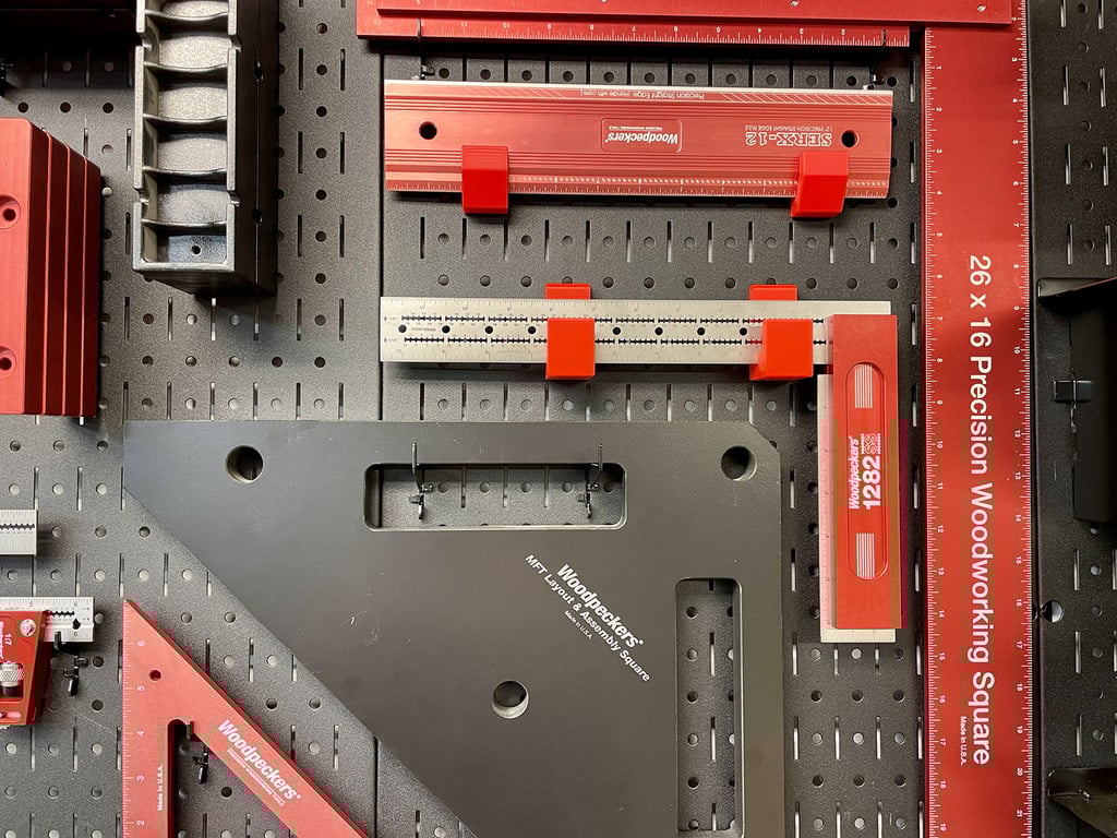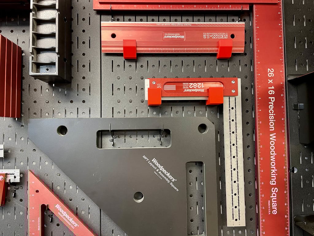 Tento nástěnný držák je navržen tak, aby efektivně uspořádal vaše nástroje Woodpeckers Stainless Steel Square na děrované desce Wall Control. Zajišťuje, že jsou vaše přesné nástroje bezpečně uloženy a snadno dostupné, což přispívá k uspořádanému a funkčnímu pracovnímu prostoru.
