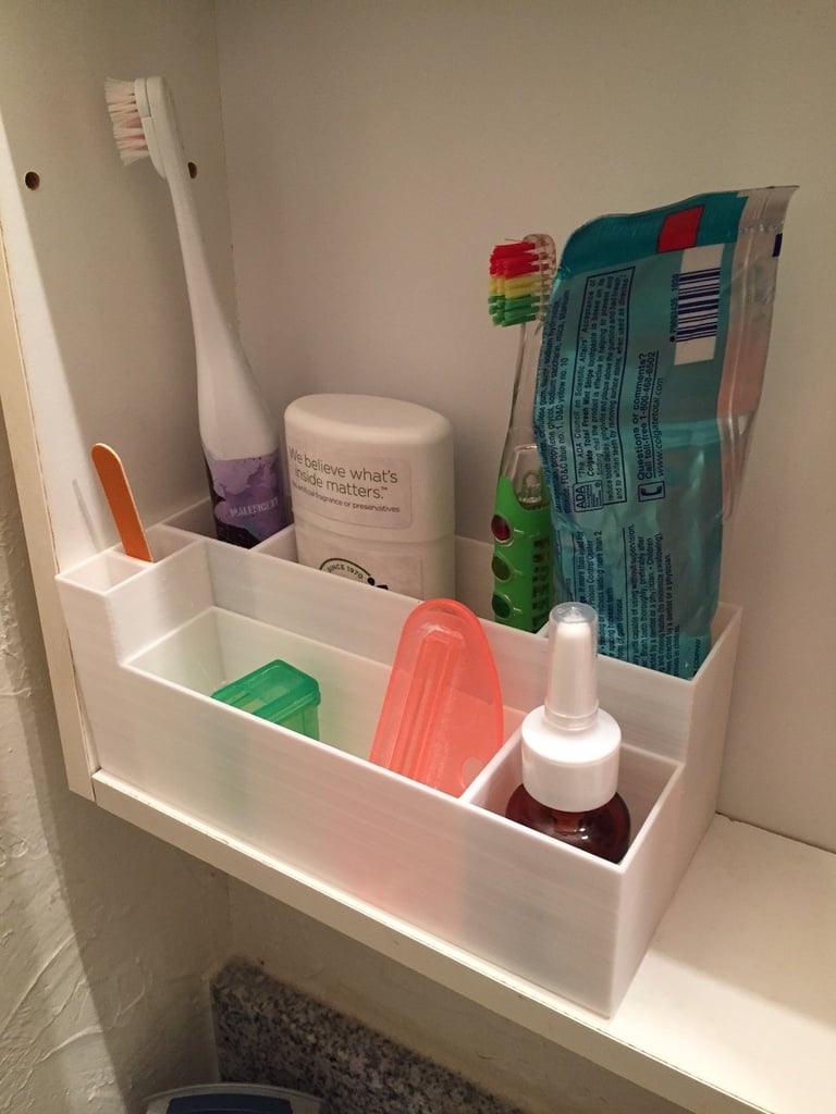 Tento organizér je navržen tak, aby optimalizoval prostor ve vaší lékárničce. Je zvláště vhodný pro tenké, nástěnné lékárničky, které se obvykle vyskytují v mnoha domácnostech. Díky otočnému designu jej lze snadno přizpůsobit tak, aby seděl buď na pravé, nebo na levé straně skříně, což poskytuje flexibilitu uspořádání. Pomáhá udržovat léky a další drobnosti úhledně uspořádané a snadno dostupné.