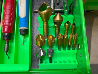 Tento praktický organizér na nářadí je navržen tak, aby vaše zahlubovací a stupňovité vrtáky byly úhledně uspořádané a snadno dostupné. Pomáhá vytvořit pořádek ve vaší dílně nebo na pracovišti tím, že dává každému speciálnímu vrtáku své vlastní pevné místo. S tímto organizérem můžete snadno najít ten správný vrták pro danou práci, což šetří čas a snižuje nepořádek. Je to ideální řešení pro každého, kdo chce optimalizovat ukládání nářadí a zajistit, aby byly důležité vrtáky vždy po ruce.