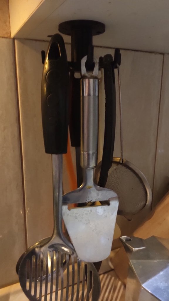 Otočný závěsný držák na kuchyňské náčiní je mimořádně praktické a prostorově úsporné řešení pro každou kuchyni. Díky svému promyšlenému designu vám umožní snadno uspořádat vaše nejpoužívanější náčiní tak, aby bylo vždy při vaření po ruce. Inovativní otočná funkce držáku zajišťuje snadný přístup ke každému jednotlivému náčiní, čímž eliminuje nepořádek a frustraci. Na robustní háčky můžete snadno zavěsit několik kuchyňských nástrojů, což přispívá k uklizenějšímu a přehlednějšímu kuchyňskému prostoru. Tento všestranný držák je navržen tak, aby optimalizoval váš pracovní prostor a zároveň dodal funkční a stylový prvek do vašeho kuchyňského interiéru.