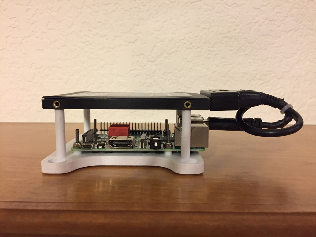 Tento držák je navržen tak, aby poskytoval robustní a organizované montážní řešení pro Raspberry Pi (model 2/3/3+) a 2,5palcový pevný disk nebo SSD. Je speciálně vyvinut pro upevnění na zadní stranu CNC gravírky Mysweety 1610, čímž vytváří integrovanou řídicí jednotku. S tímto nastavením může Raspberry Pi pohánět gravírovací stroj a zpřístupnit CNCjs ve vaší místní síti, což optimalizuje váš pracovní postup. Držák zajišťuje dostatek prostoru pro přidání desky k GPIO headeru Pi a design navíc podporuje dobré proudění vzduchu pro udržení optimálního provozu vašich komponent. Toto řešení přispívá k udržení pořádku na vašem pracovišti a bezpečnému umístění hardwarových komponent.