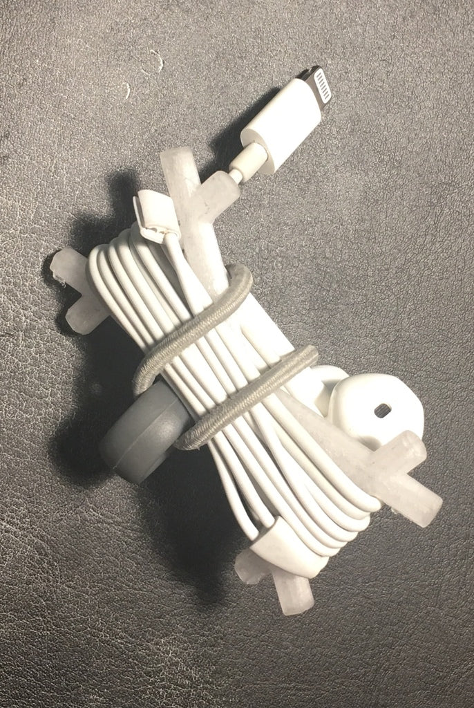 Tento abstraktní držák kabelů je navržen tak, aby vnesl řád do vašeho kabelového chaosu. Pomáhá udržovat vaše kabely uspořádané a bez zamotání, ať už se jedná o nabíječky, sluchátka nebo jiné elektronické kabely. Díky svému jedinečnému a funkčnímu designu můžete snadno uspořádat několik kabelů současně, což z něj činí praktické řešení pro domácnost i kancelář.