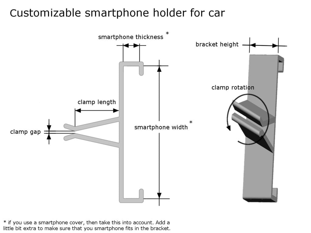 Tento držák smartphonu je kompatibilní s různými značkami a modely smartphonů a můžete jej snadno přizpůsobit konkrétně vašemu telefonu zadáním rozměrů telefonu v procesu objednávky. Díky tomu je ideálním doplňkem do vašeho auta, aby byl váš telefon na dosah a snadno čitelný.