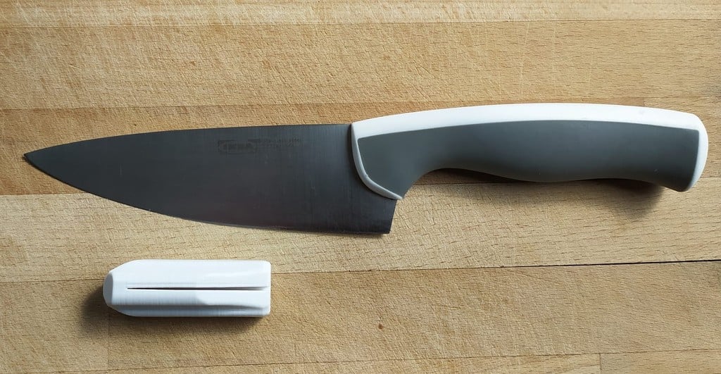 Byla navržena tak, aby pasovala na většinu geometrie nože, pokud není čepel silnější než 1,8 mm. Pokud má váš nůž silnější čepel, můžete velikost rukojeti přizpůsobit. Rukojeť lze snadno odstranit otočením kolem špičky, což usnadňuje skladování nebo používání bez ní.