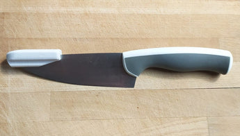 Objevte praktické řešení pro manipulaci s tvrdými potravinami s tímto čitelným dodatečným úchopem pro váš nůž. Tento design přidává další úchop, takže můžete snadno krájet ledové nebo tvrdé kusy jídla, což je ideální pro usnadnění kuchyňských úkolů, jako je zpracovávání mražených potravin. Rukojeť se rychle instaluje umístěním špičky nože do drážky a jemným přitlačením dolů, což zajišťuje stabilní uchycení.