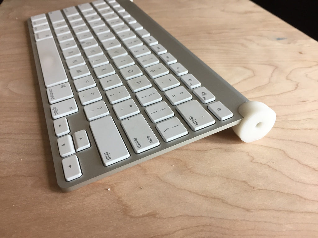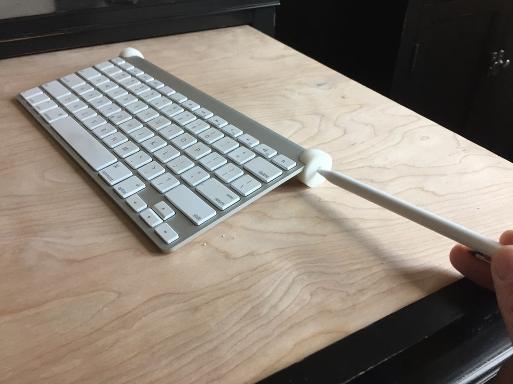 Toto je kryt tlačítka napájení na bezdrátové klávesnici Apple. Kryt zabraňuje náhodnému zapnutí klávesnice, když ji přenášíte v tašce. Lze jej aktivovat téměř jakýmkoli psacím zařízením, včetně Apple Pencil!