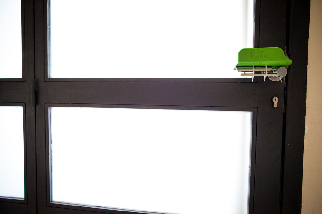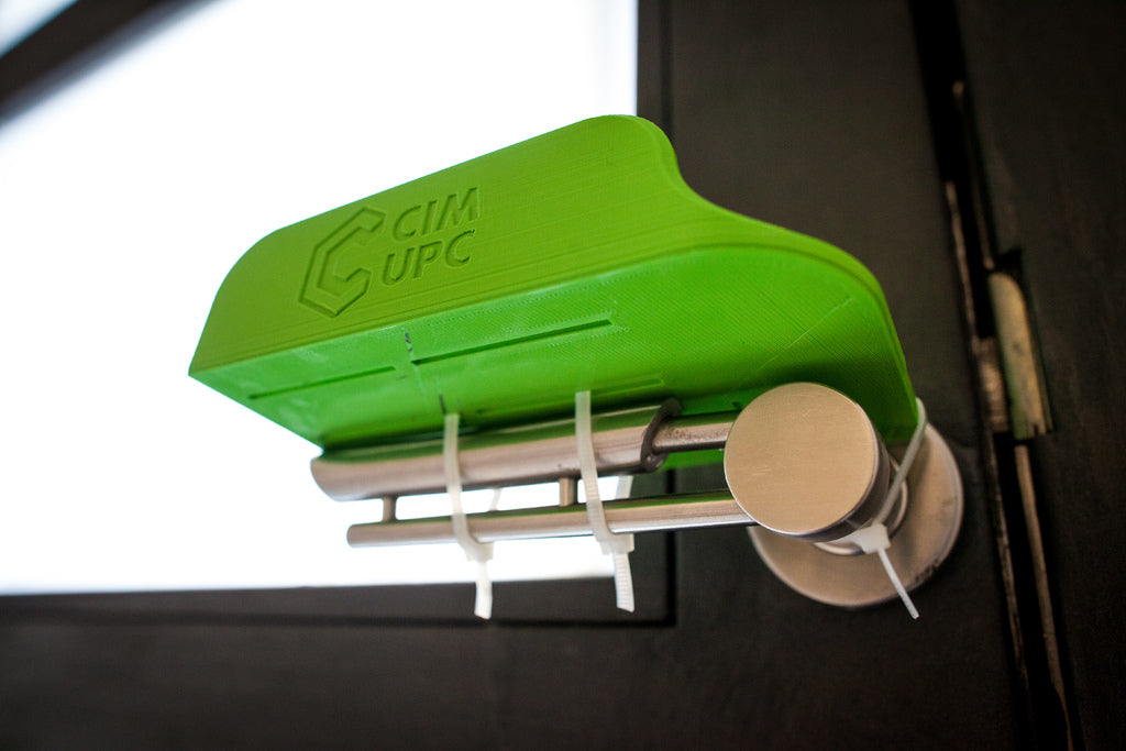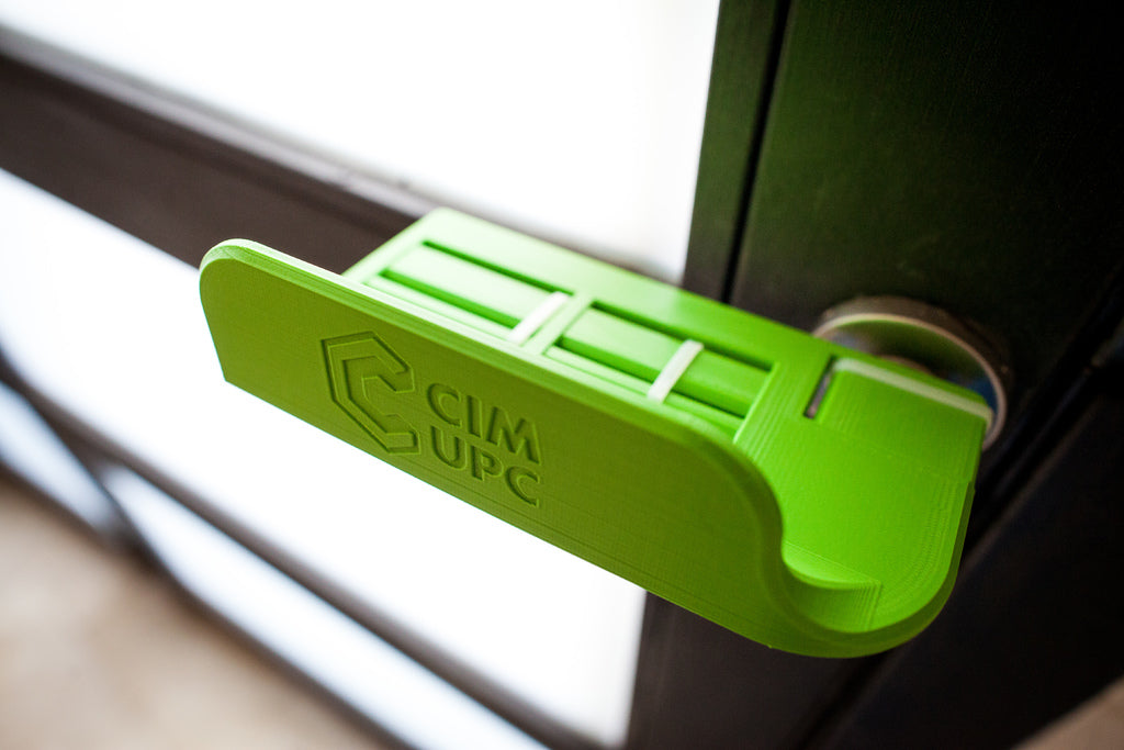 Otvírač dveří s ramenem - COVID-19 je samostatný otvírač dveří určený ke snížení rizika infekce COVID-19. Toto zařízení lze snadno vyrobit pomocí stolní 3D tiskárny a sestavit pomocí pouhých 3 kabelových stahovacích pásků. Arm Door Opener lze přizpůsobit pro různé kliky dveří a snadno se sestavuje. Je k dispozici pro levé i pravé otevírání dveří a lze jej nainstalovat za méně než minutu. Tento výrobek je ideální pro veřejné prostory v budovách, nemocnicích, pracovních centrech nebo obchodech, kde je vysoké riziko přenosu virů prostřednictvím dveřních klik.