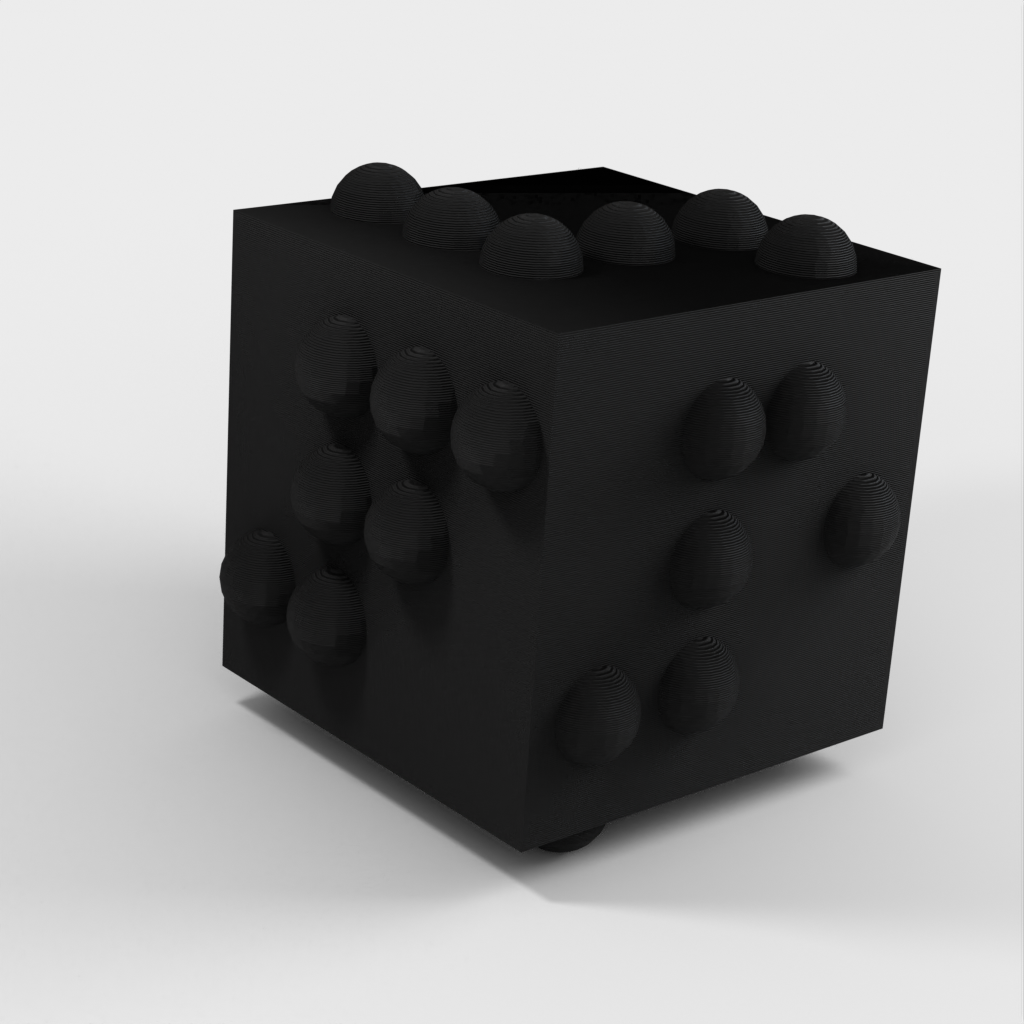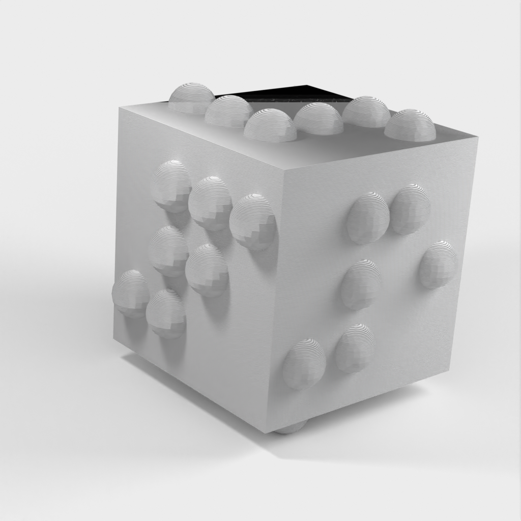 Hluchý navržený pro hraní pro osoby se zrakovým postižením. Lze ji použít k tomu, aby nevidomí mohli hrát hry s kostkami tak, že se dotknou horní části a zjistí, jaké číslo zahráli.