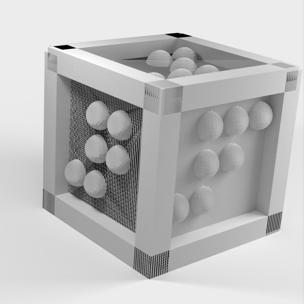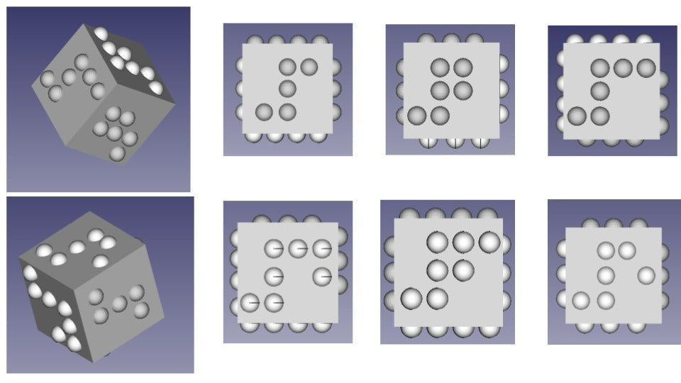 Tuto hru s kostkami navrhli studenti střední školy IES Menéndez Pidal v A Coruña a vytvořili ji, aby se nevidomí lidé mohli účastnit her s kostkami.