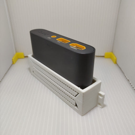 Jednoduchý nástěnný držák pro HTC VIVE Link Box. Držák poskytuje volný přístup ke všem vstupům.