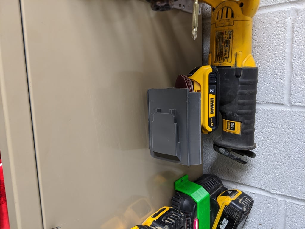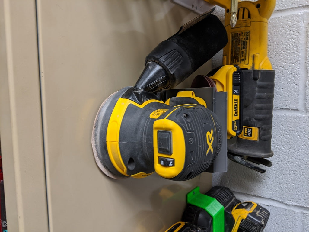 Jedná se o 90° montážní podpěru pro Dewalt Orbital Sander. Tento produkt je navržen se zadním držákem baterie Dewalt 20V a mezerami pro uložení brusného papíru.